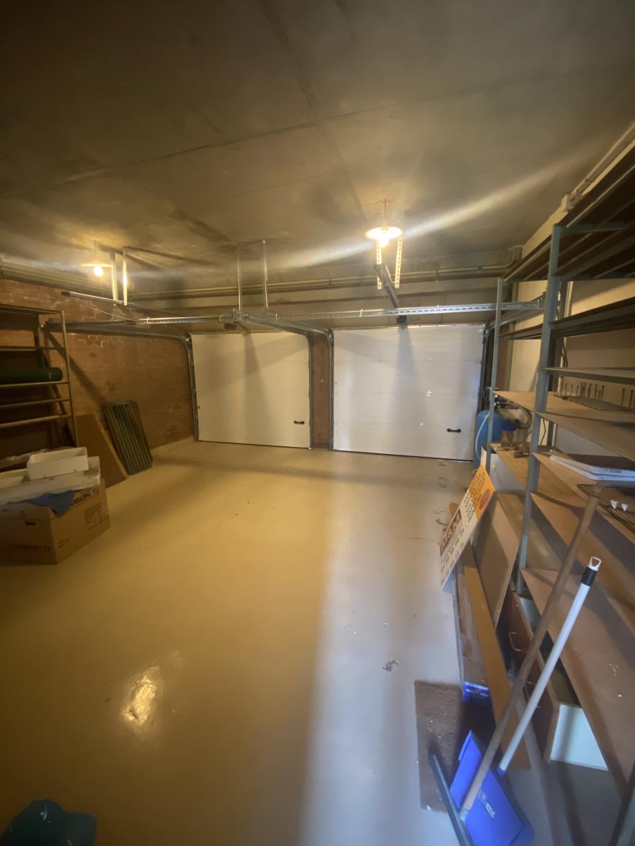 Garages 2 voitures avec étagères, places de stationnement à l'avant de la maison, beau jardin exposé sud faisant le tour complet de la maison.