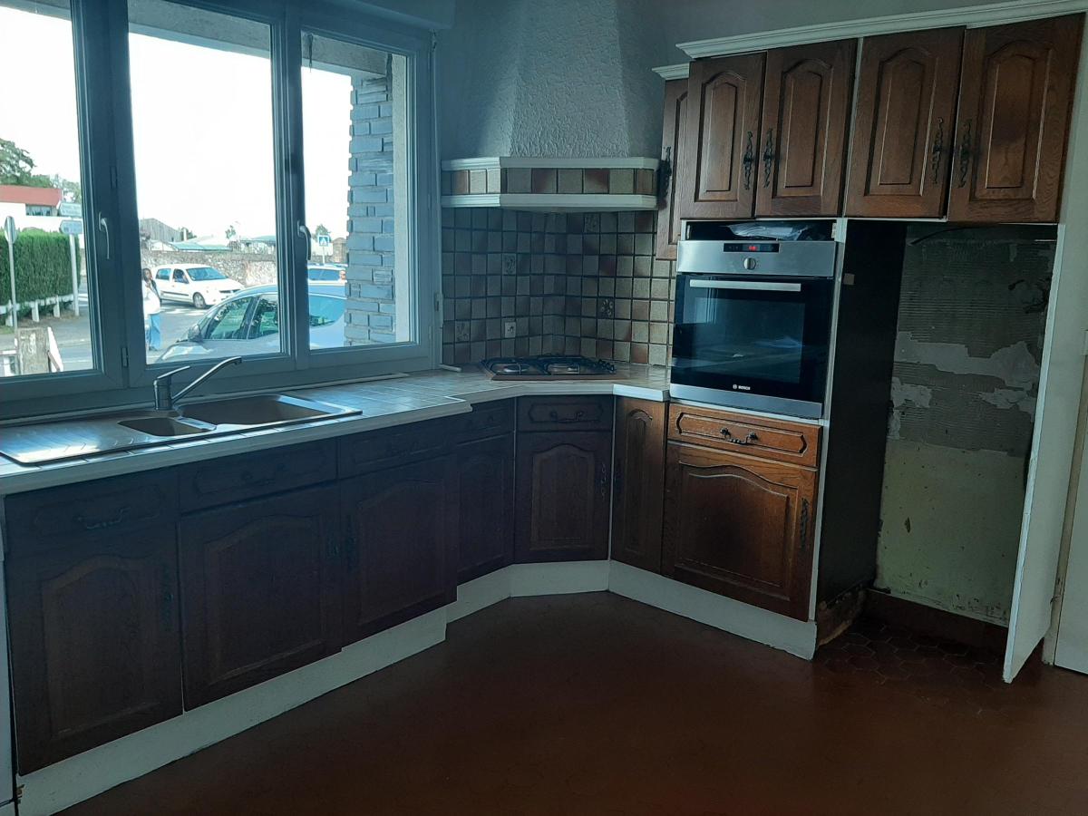 Maison ancienne de type 7 comprenant une entrée avec placard, WC, cuisine aménagée et équipée (four, hotte, lave vaisselle), séjour salon avec cheminée, bureau, 2 chambres, salle de douches