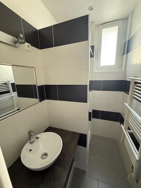 Une salle d’eau fonctionnelle comprenant une douche et un sèche serviettes ainsi que des WC séparés complètent le bien.
