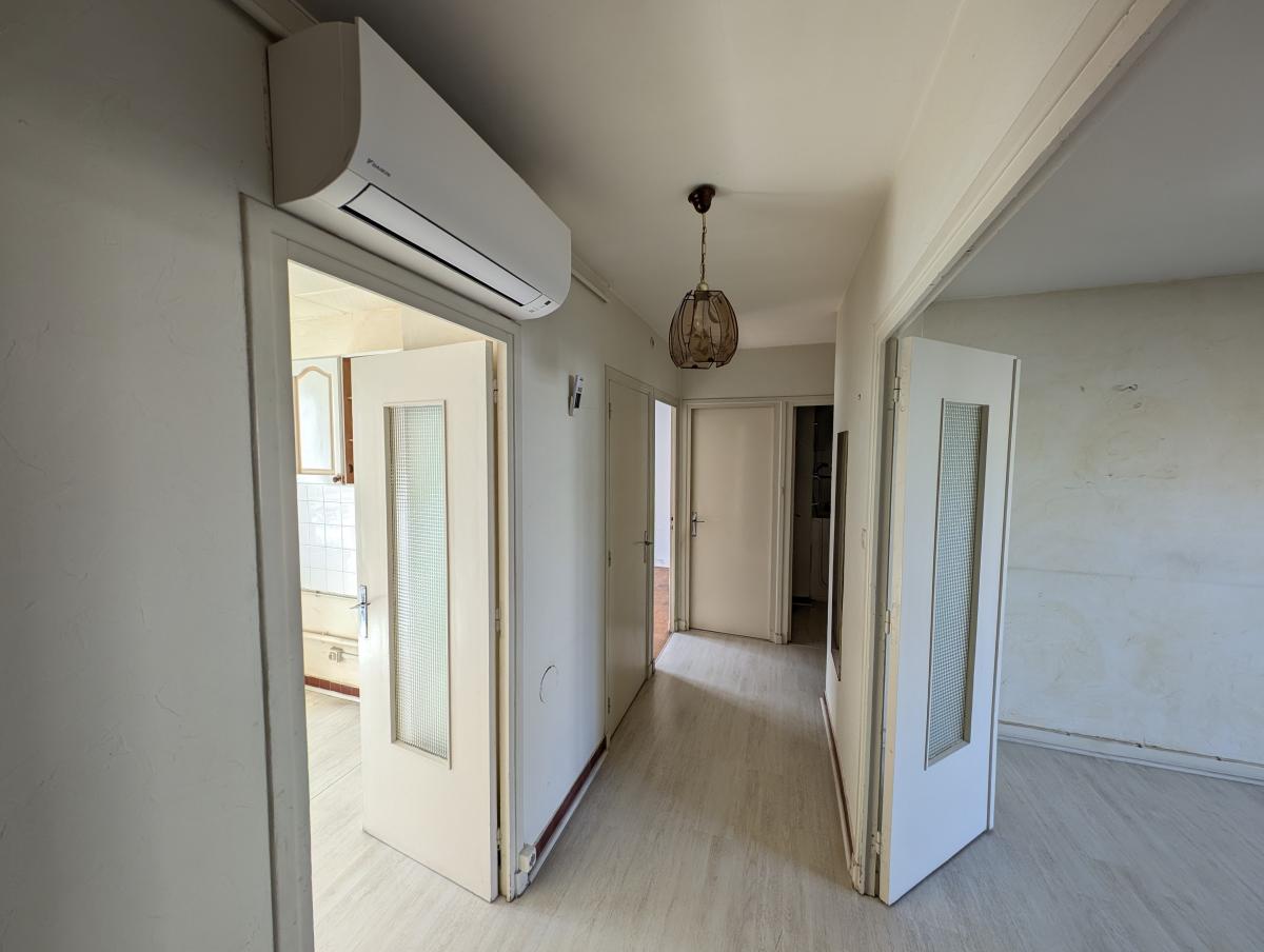 Des travaux de rafraîchissement sont à prévoir, offrant un beau potentiel de personnalisation. Le chauffage est collectif. L’appartement est également équipé d’une climatisation réversible et de fenêtres en PVC double vitrage avec volets roulants solaires, assurant un bon confort thermique.