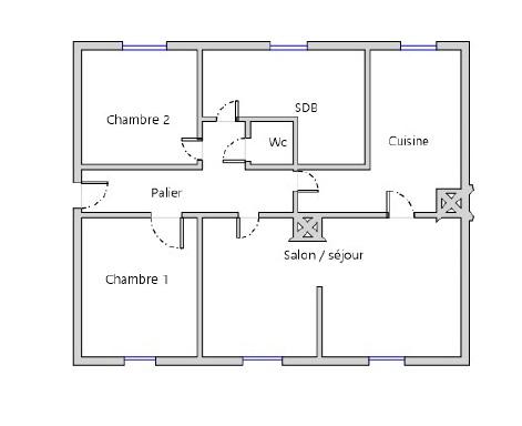 - Hall d'entrée, salon, salle à manger, cuisine, dégagement, wc, salle d'eau, deux chambres