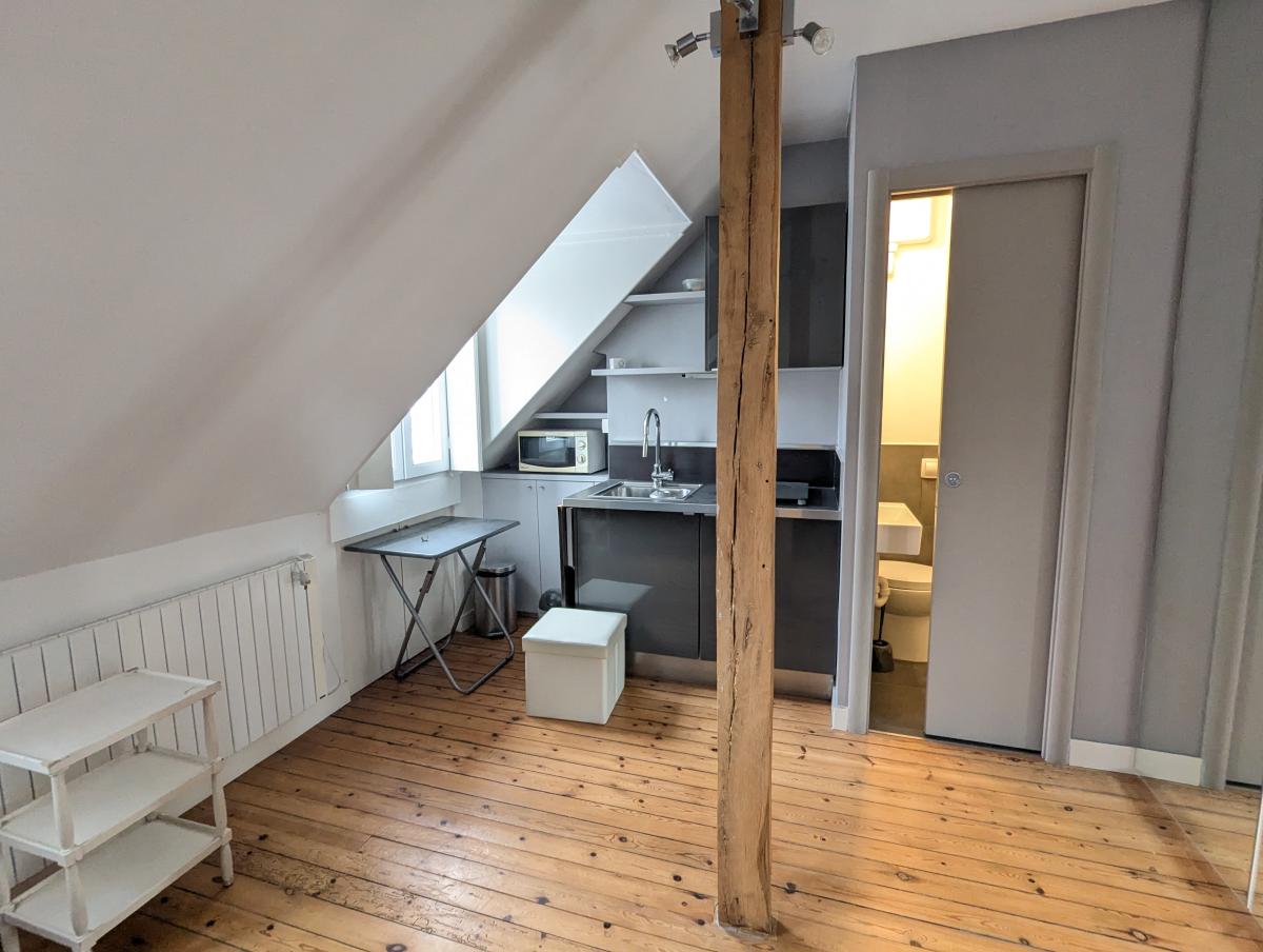 Situé rue Chanoinesse, au cœur du prestigieux 4ᵉ arrondissement de Paris, ce studio plein de charme de 17,20 m²au sol et 11.50 m² carrez offre une vue exceptionnelle sur Notre-Dame de Paris.