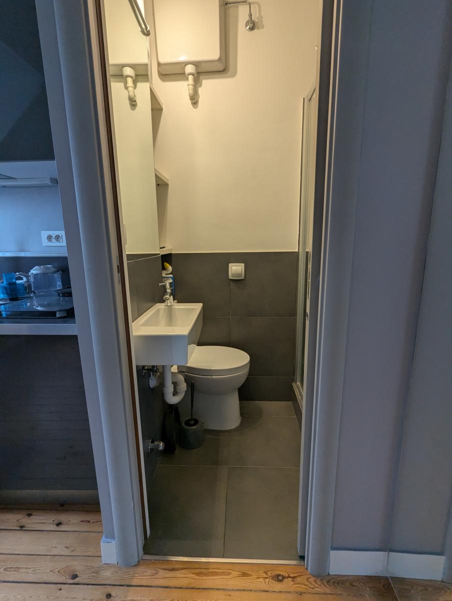 Au 6ème et dernier étage sans ascenseur l’appartement, en très bon état, se compose d’une pièce principale lumineuse avec cuisine ouverte, et d’une salle d’eau avec Sanibroyeur