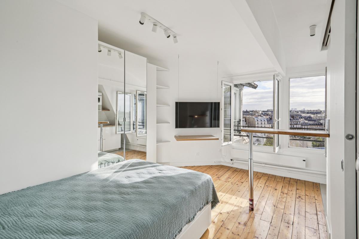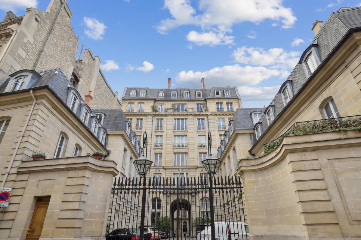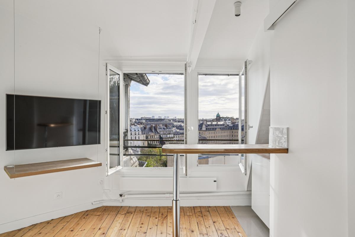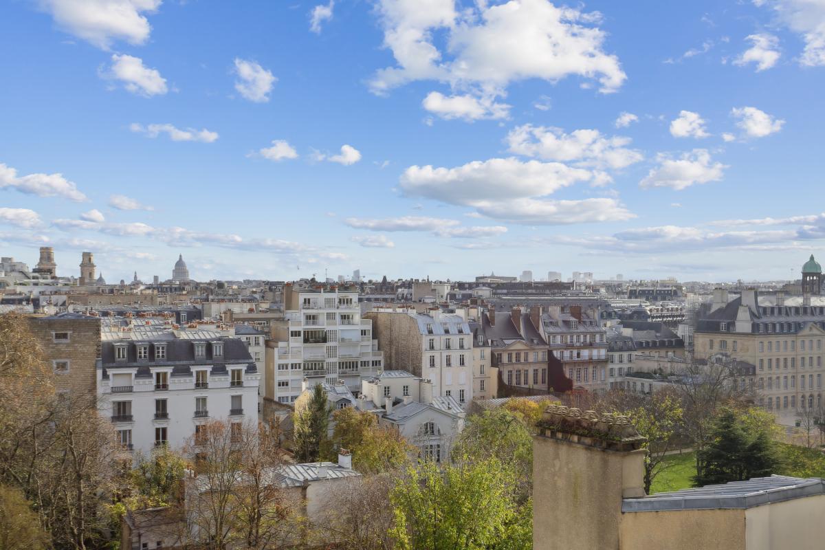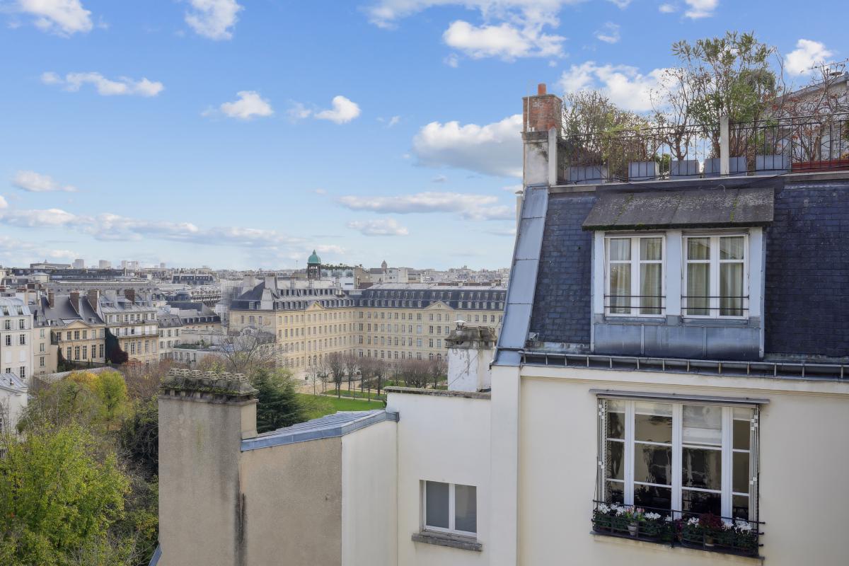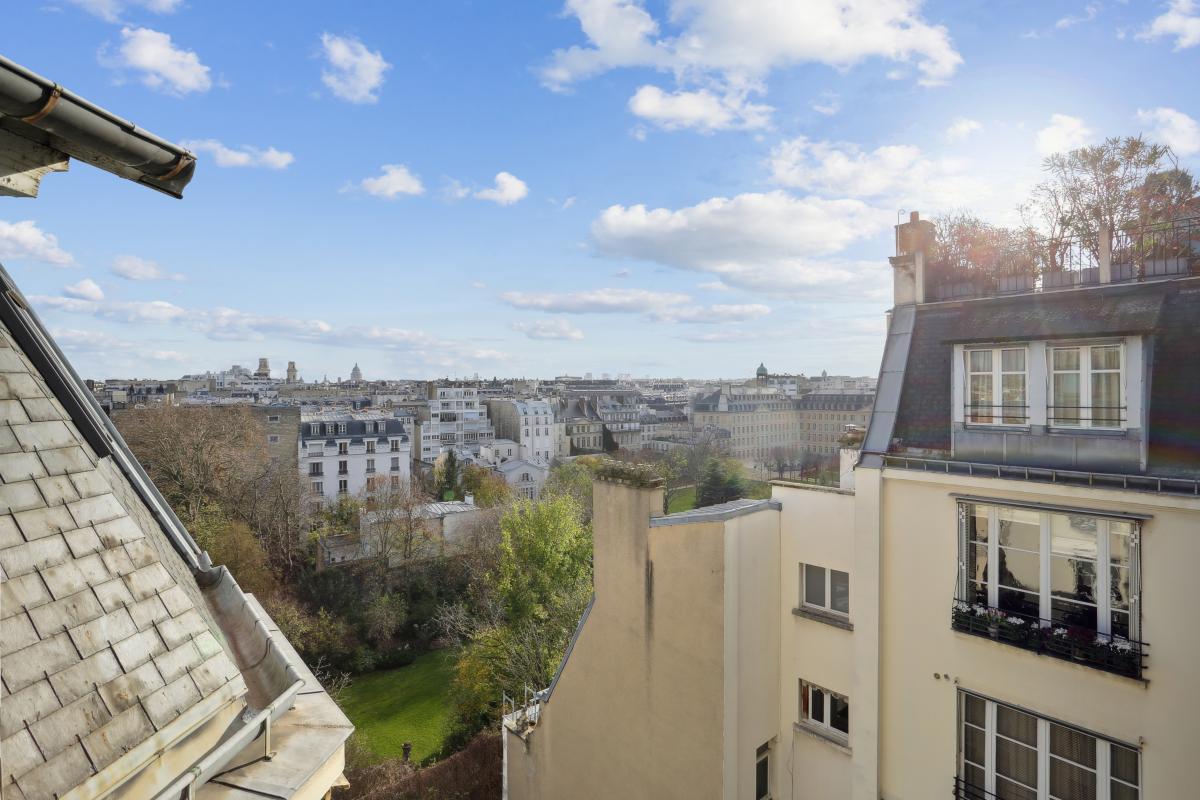 Rue de Varenne, au septième étage avec ascenseur d'un immeuble de grand standing sécurisé et gardienné, un studio plein ciel aux vues dégagées donnant sur les jardins des missions étrangères et les monuments parisiens (Panthéon, Saint Sulpice... ).