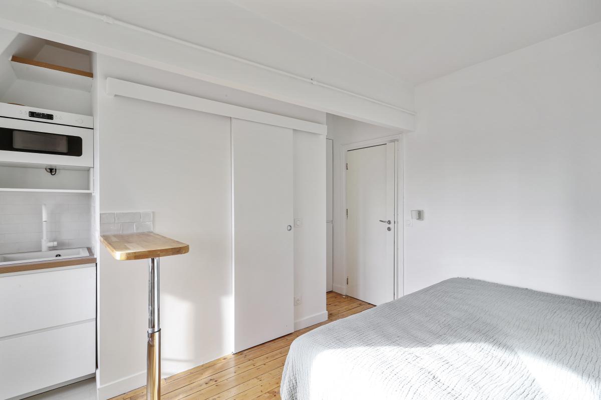 Ce bien ensoleillé d'une surface de 15.72m² loi Carrez se compose de : une entrée avec placard, une pièce de vie avec trois fenêtres offrant de très jolies vues dégagées sur le Sud Est Parisien avec dressing et cuisine ouverte, une salle de douche avec sanibroyeur.