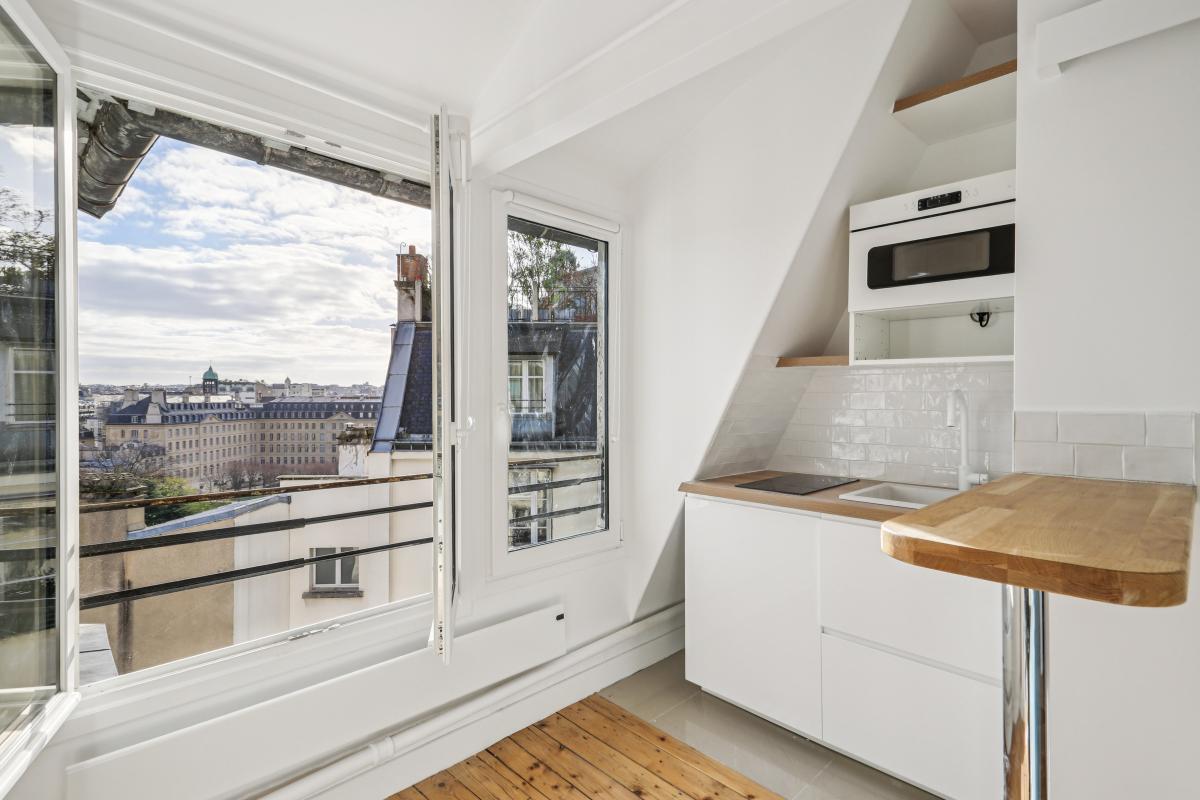 Cet adorable pied à terre est entièrement rénové avec soin et bénéficie d'un calme absolu et de vues remarquables.