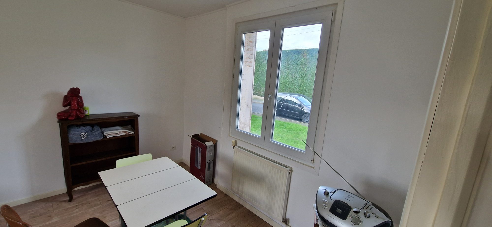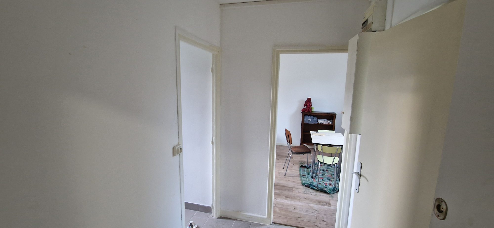 Entrée, cuisine, séjour, salle d'eau avec wc.