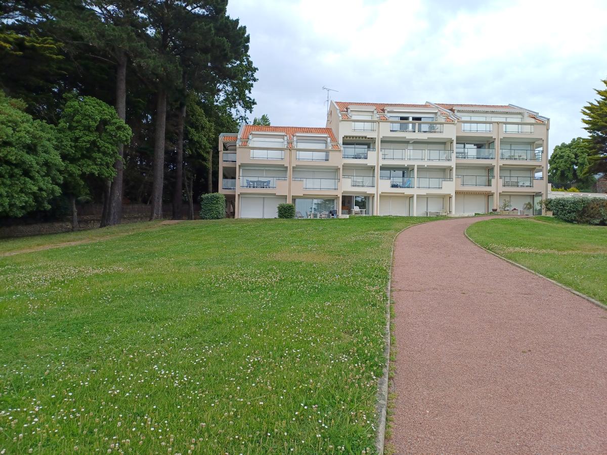 PORNIC - Vue et accès direct sur plage de la Birochère - Proche de la Thalasso - Dans résidence privée disposant d'un parc arboré, agréable Type 1 Bis d'une superficie de 28.40 m² se composant d'une belle pièce de vie avec grande baie vitrée sur grande terrasse de 19 m² vue mer, un coin cuisine aménagée et équipé, un coin nuit, une salle d'eau, WC séparé. Une Cave et un parking privé. Le montant des charges sont de 199 €/trimestre. Ravalement refait en 2025 ainsi que les parties communes.