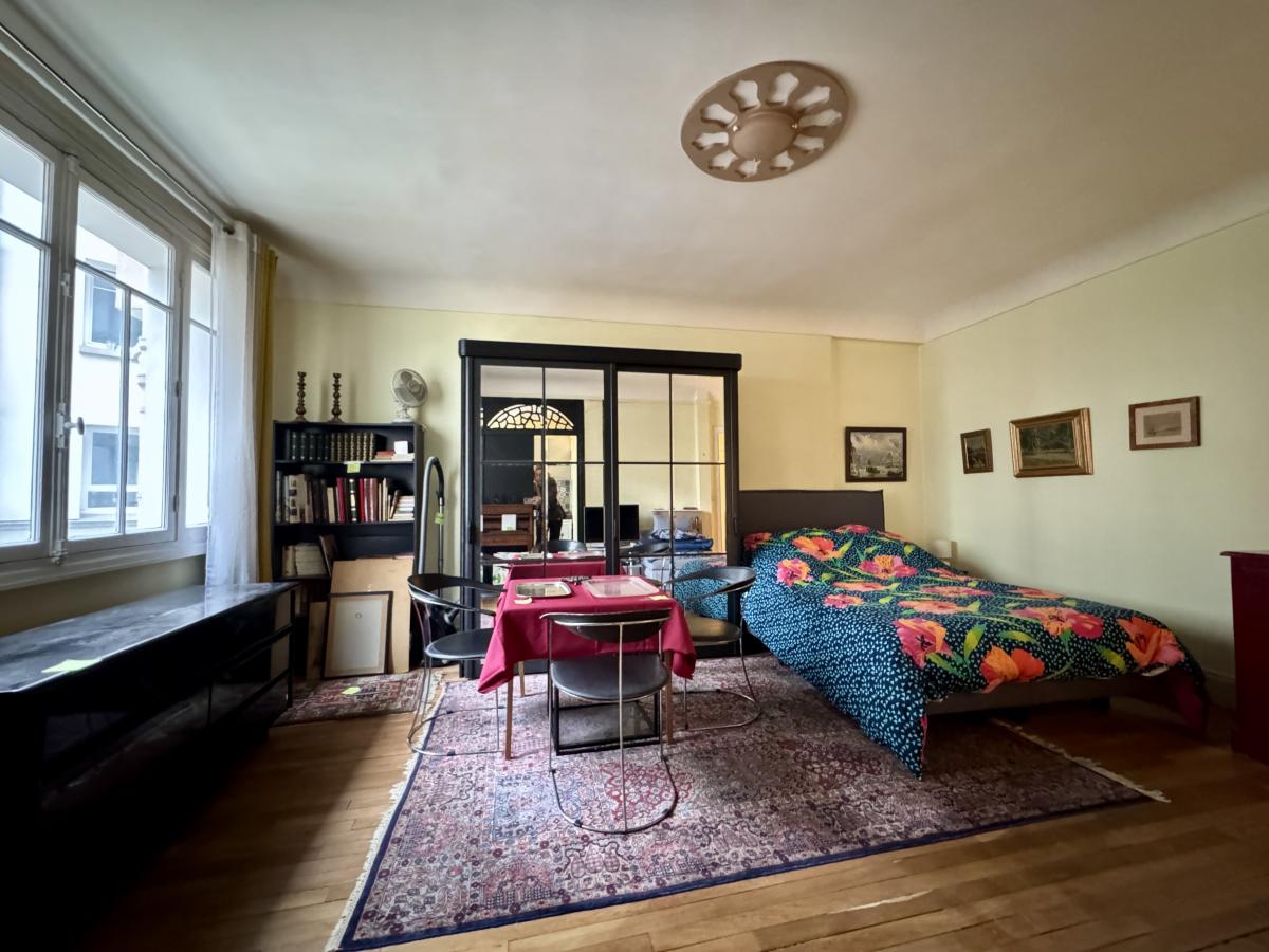 Notaire vend, au sein d'une copropriété de 1930, de plusieurs batiments réunis autour d'une cour, ce studio situé 2ème étage ,composé d'une entrée avec placard, une salle de douche avec WC, une pièce de 24m² et une cuisine .