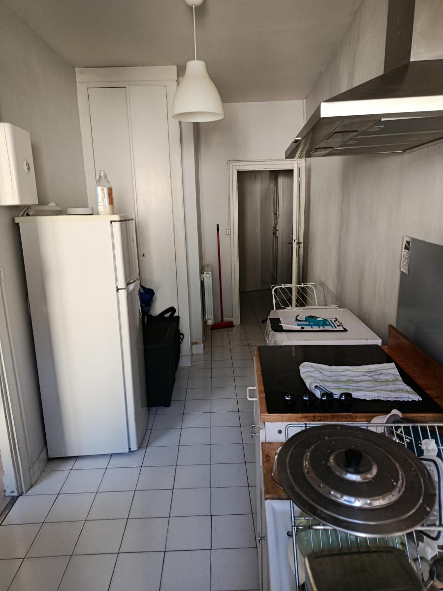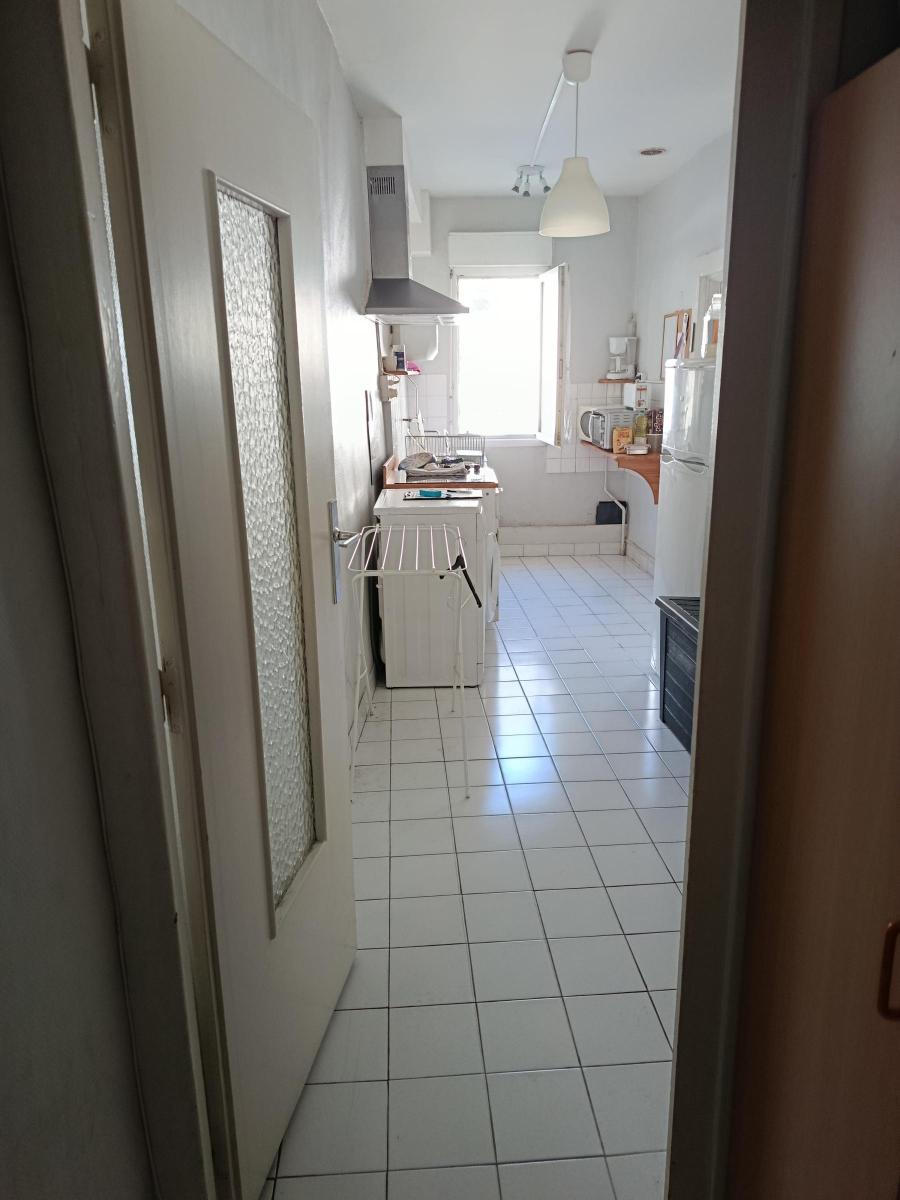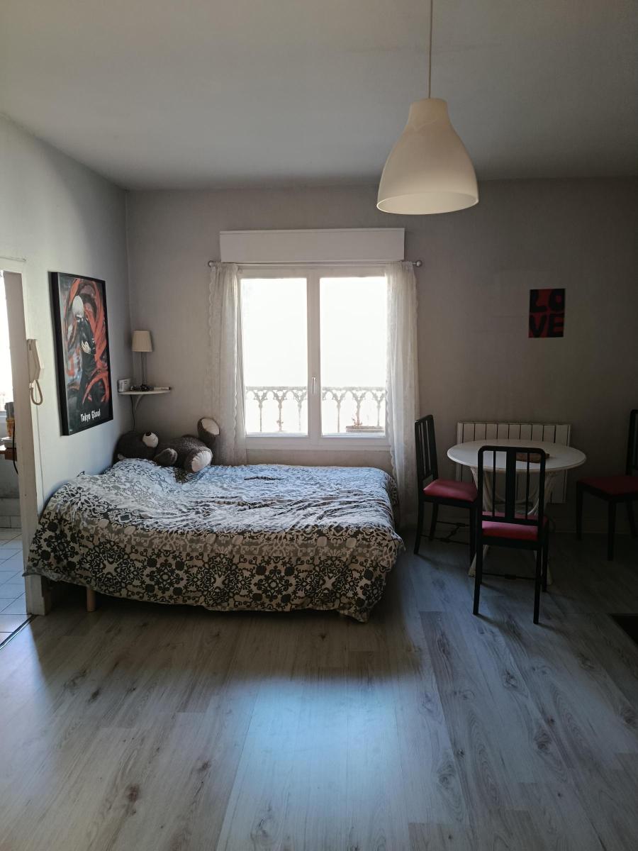 Au 1er étage dans une petite copropriété, l'appartement comprend une pièce principale de 20m² avec cheminée et rangements, une cuisine séparée, salle d'eau attenante, entrée et wc.