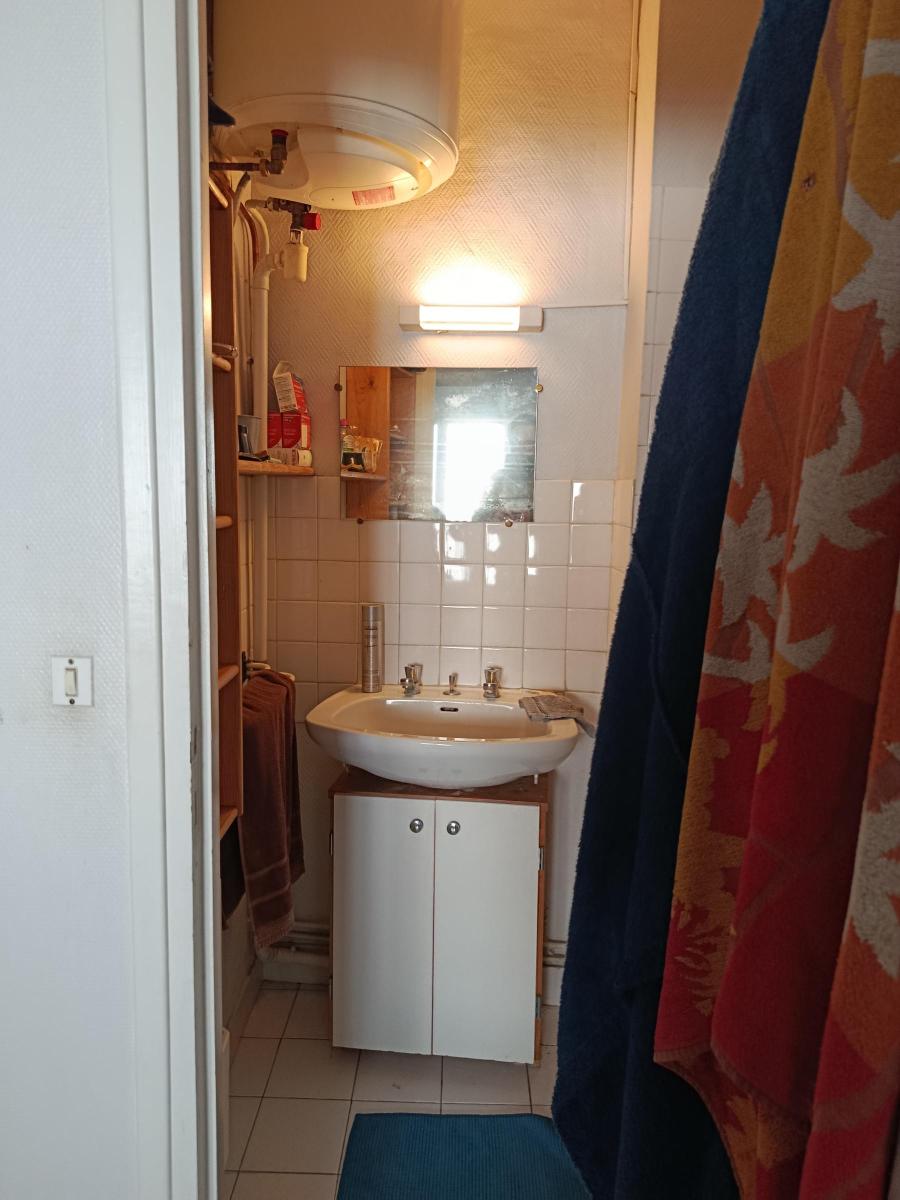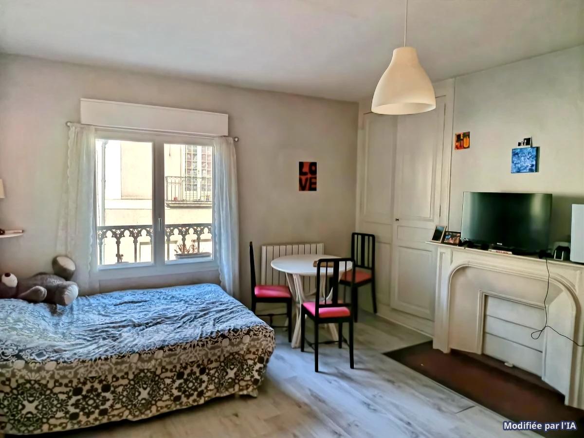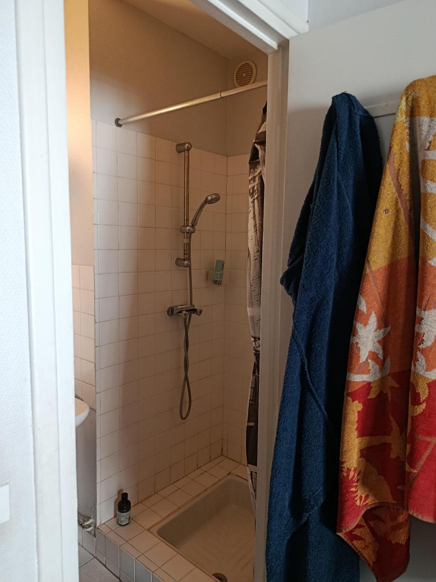 Au 1er étage dans une petite copropriété, l'appartement comprend une pièce principale de 20m² avec cheminée et rangements, une cuisine séparée, salle d'eau attenante, entrée et wc.