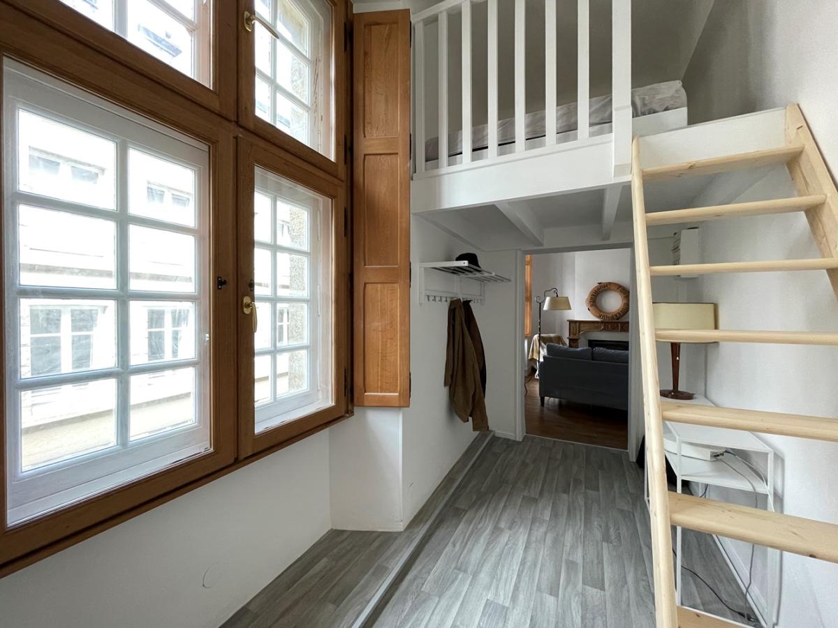 SAINT-MALO - Intra-Muros - Appartement - Situé au 3ème étage d'une copropriété remplie de charme, cette petite pépite de 46.16m² au sol et 34.72m² carrez est composé d'une pièce de vie avec cuisine aménagée, un coin salon avec cheminée fonctionnelle et une hauteur sous plafond de 3.20m, deux coins couchages en mezzanine et une salle d'eau avec wc. Une cave en sous-sol complète ce bien atypique de qualité ! Rare à la vente.