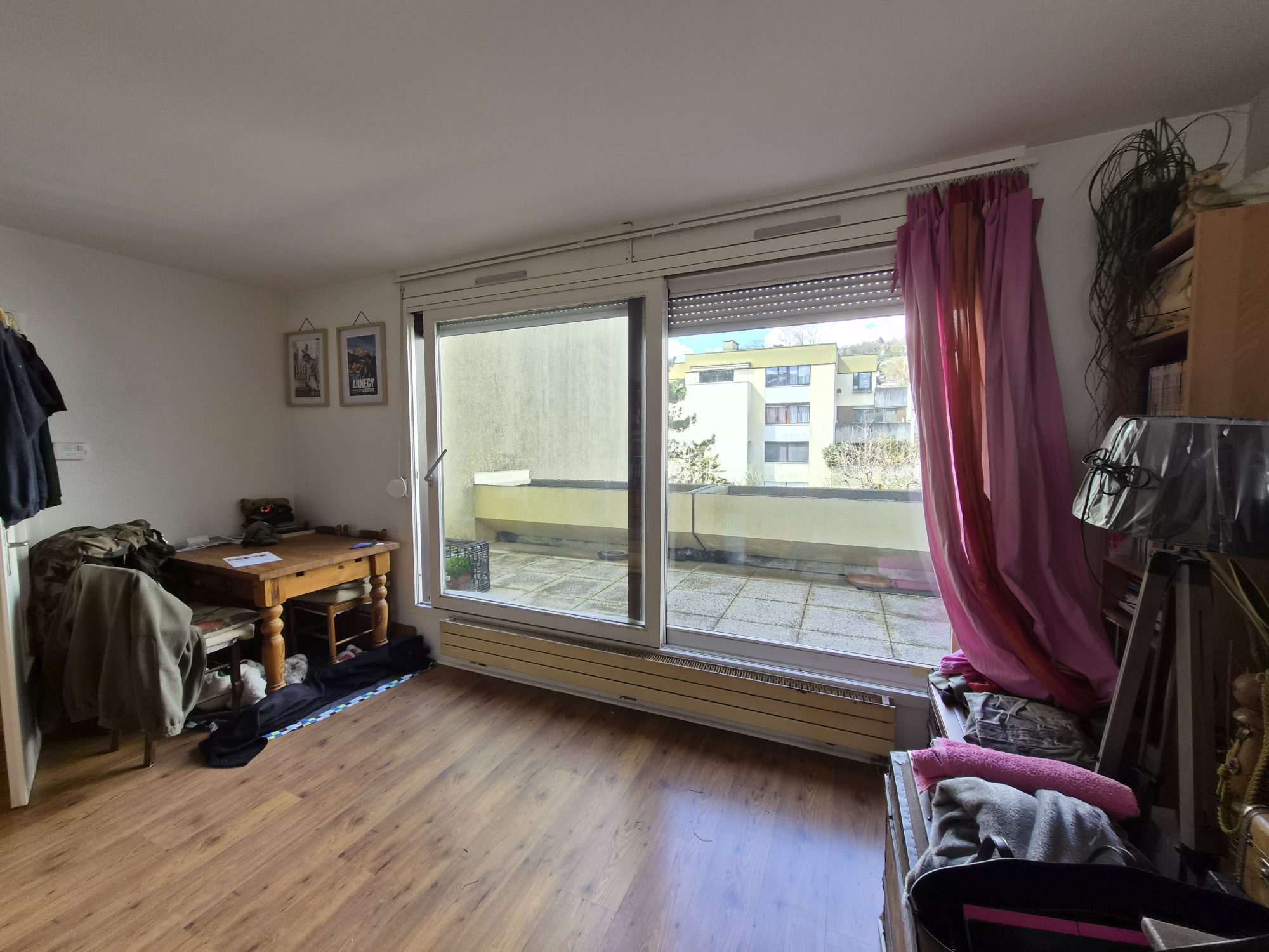 Situé au 2ème étage côté nord, cet appartement se compose de : entrée et dégagement avec placards, WC, salle de bains, coin cuisine, séjour/chambre avec terrasse de 8m².