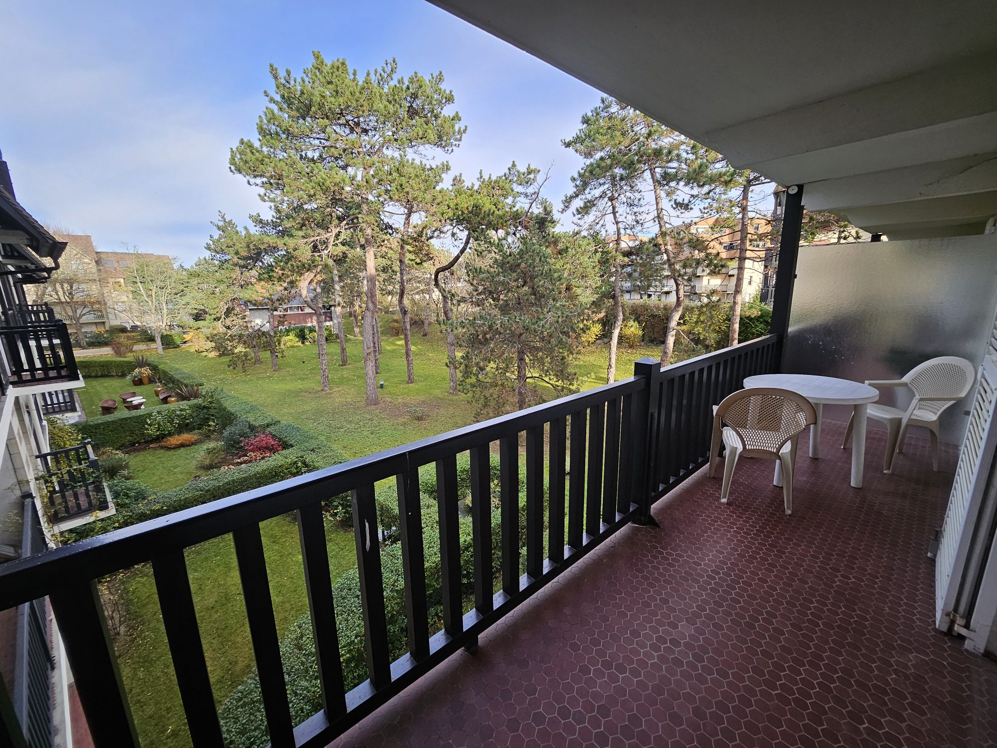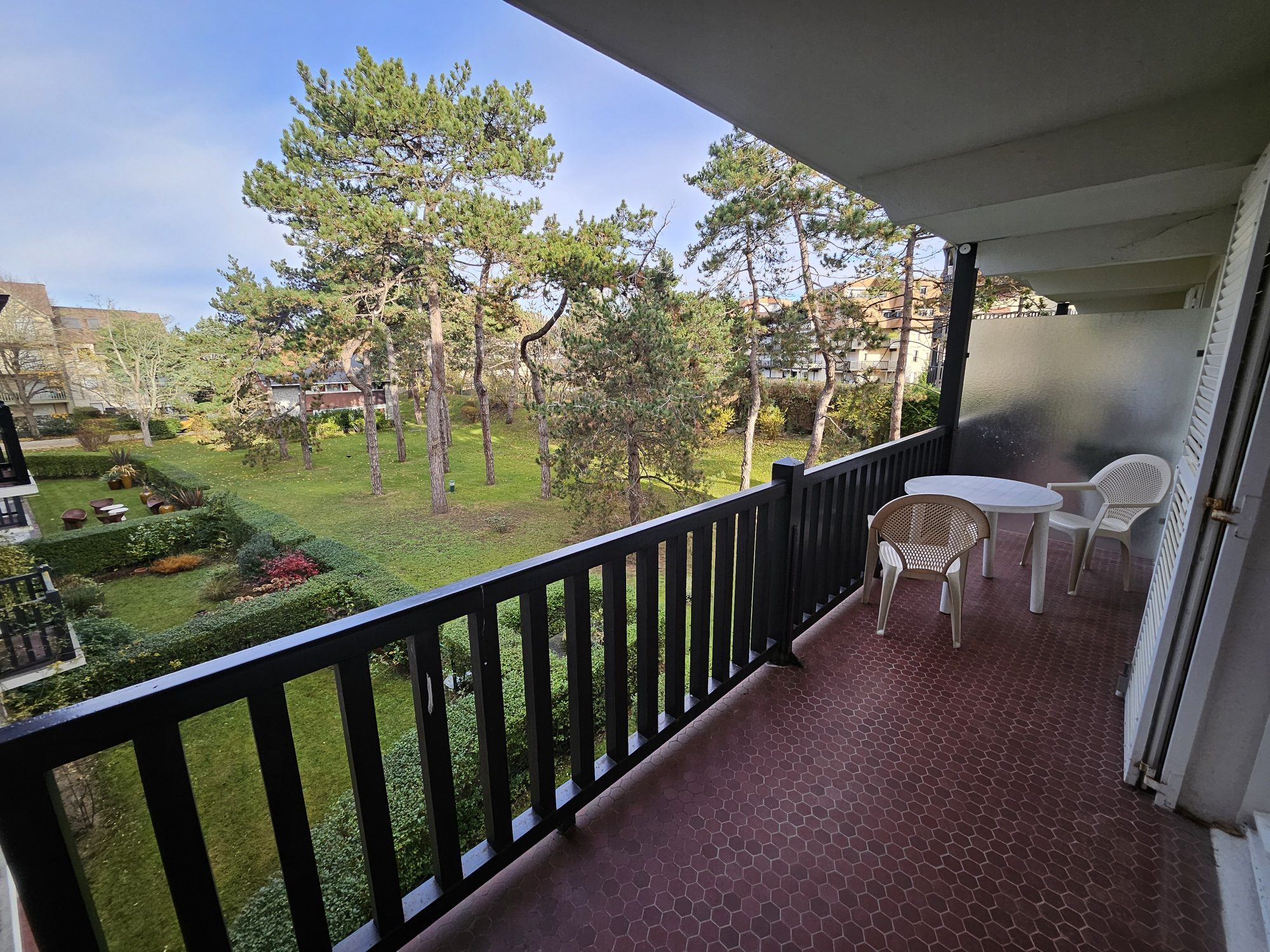 D'une entrée avec placard, pièce de vie de 31.52 m² avec son coin nuit, accès au balcon de 8.15m² et sa vue sur les jardins, cuisine aménagée-équipée. Un dégagement offre WC séparé et salle de bains.