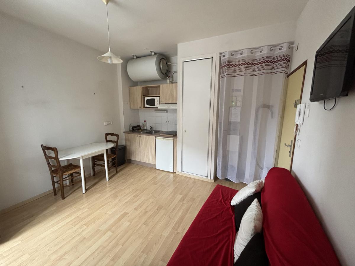 AIX LES BAINS, rue Davat, entre thermes et centre ville, T1 bis de 24 m² au 1er étage avec ascenseur d'une petite copropriété entretenue. Donnant sur cour Sud/Ouest avec vue sur la Dent du Chat, ce très joli logement entièrement meublé se compose d'une cuisine équipée et espace repas sur un balcon profond permettant d'y installer une table et ses chaises, une chambre indépendante et une salle d'eau avec WC. Les volumes sont optimisés, l'état général, très bon, suite à une rénovation complète de 2012. L'absence de nuisances et de vis à vis direct fait de cet appartement un investissement locatif ou une résidence principale idéale, proche de toutes commodités. Copropriété de 21 lots d'habitation, Charges courantes annuelles 460 €.