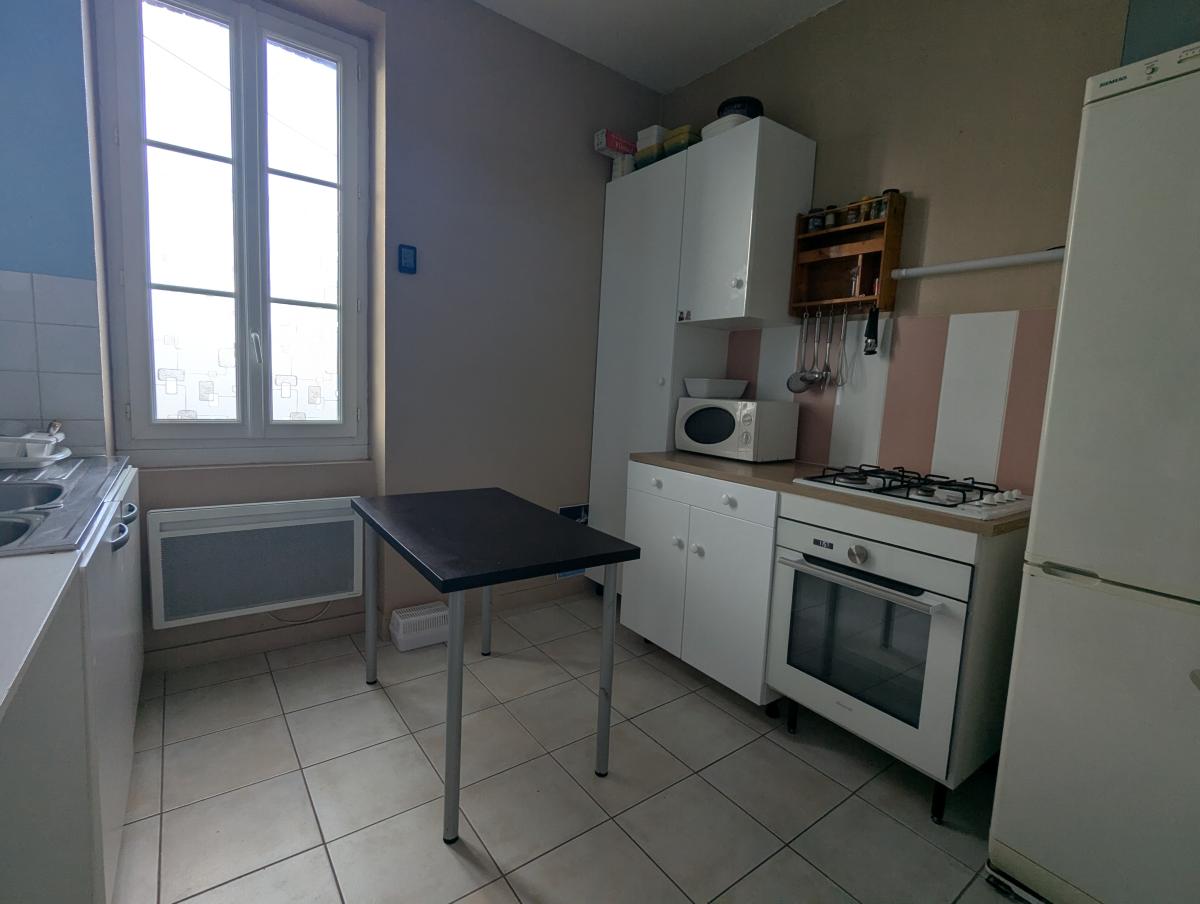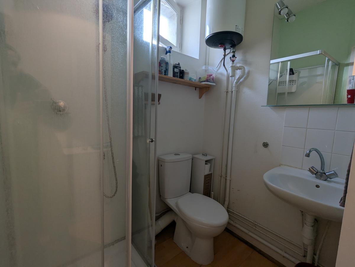 Au 1er étage un appartement de type T1 bis loué comprenant : une entrée, un salon, une cuisine, une chambre, une salle d'eau avec wc.