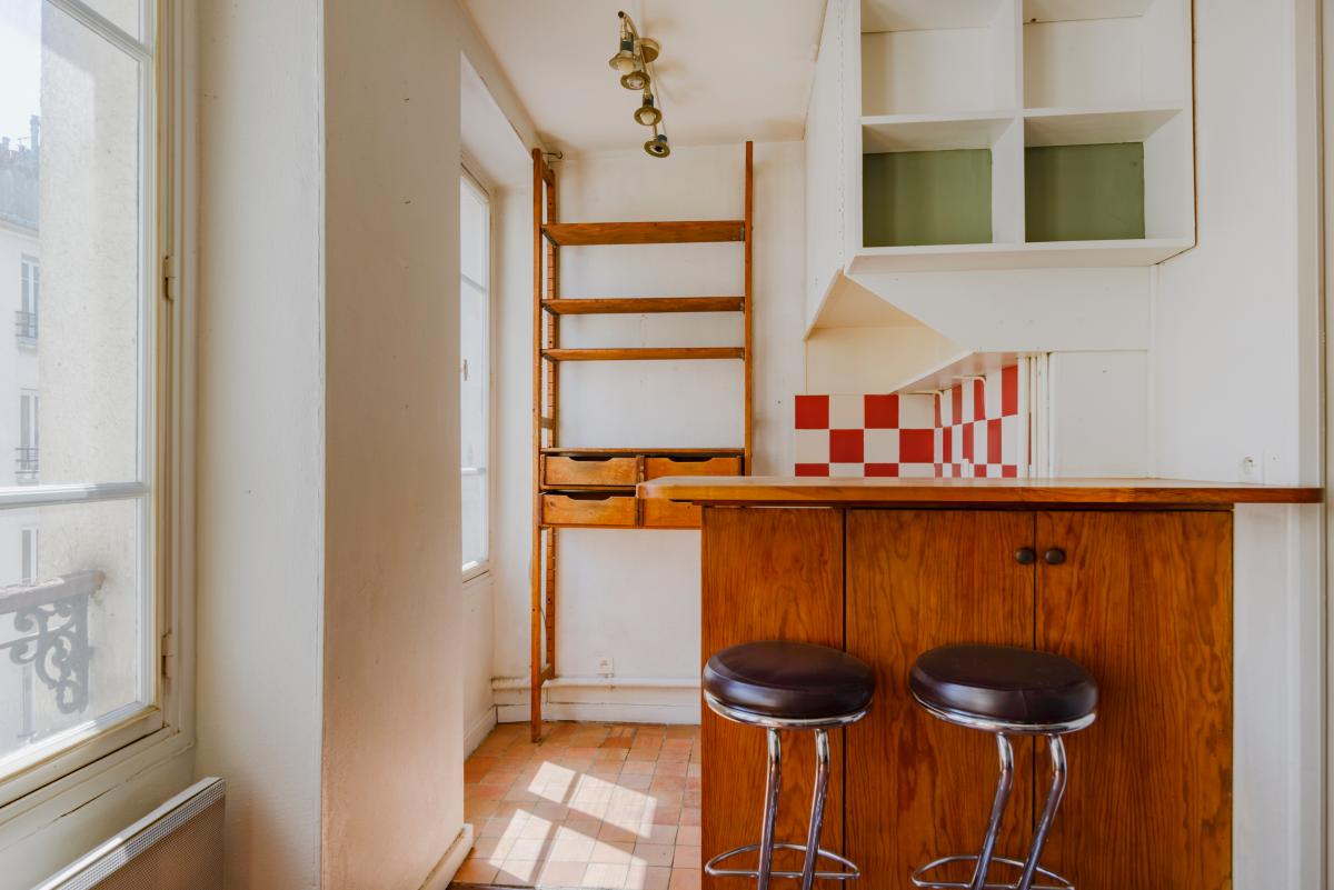 Coup de cœur / Exclusivité. Début de la rue de la Roquette, cœur Bastille. Au sein immeuble ancien, un appartement 2 pièces en duplex de 29,10m² loi Carrez (41,15m² au sol) au 3ème et dernier étage sans ascenseur. Il se compose d'une entrée avec placard donnant sur séjour avec cuisine ouverte (3 fenêtres sur rue), escalier menant au niveau supérieur avec chambre, placard, salle de bains avec WC. Très lumineux.