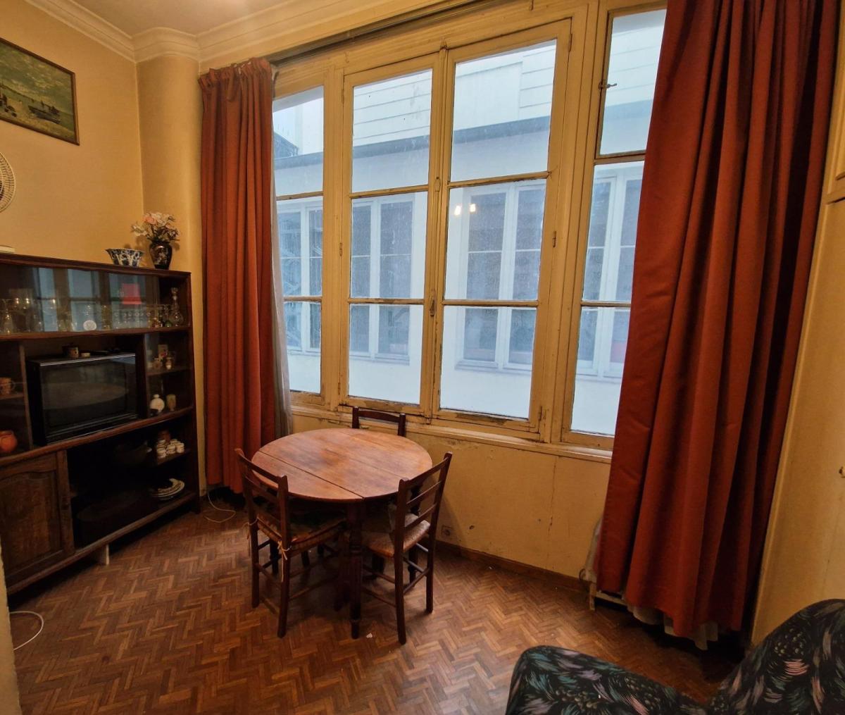 Boulevard Beaumarchais Appartement à rénover en sous-plex sur cour de 30 m² exposé sud. RDC sous une hauteur de 3,40 m : Entrée, salon avec point d'eau. En sous-sol sous une hauteur de 2,55 m : une cuisine, une chambre, un dégagement, une salle de bain. Un espace de stockage à coller à l'appartement de 19 m² et une cave complètent l'appartement. Charges annuelles : 520€ & taxe foncière : 664€ Non soumis au DPE car absence de chauffage. Place des Vosges à proximité. Transports : à proximité immédiate du métro Chemin Vert ligne 8, Bréguet - Sabin ligne 5, Bastille.