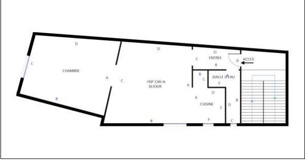 Il se compose d'une entrée, d'une salle de bain avec commodité et douche, une cuisine ouverte sur le salon et une chambre donnant sur rue.