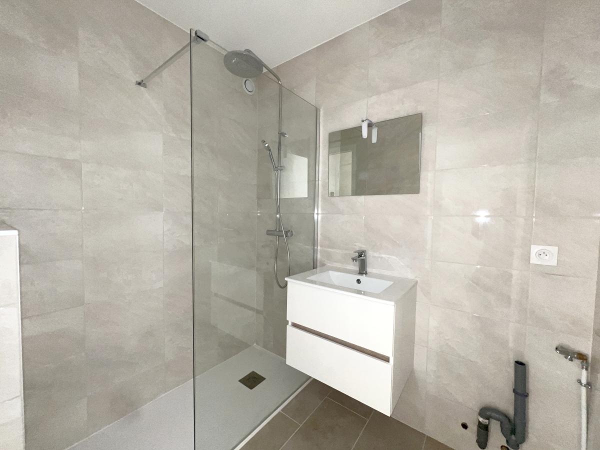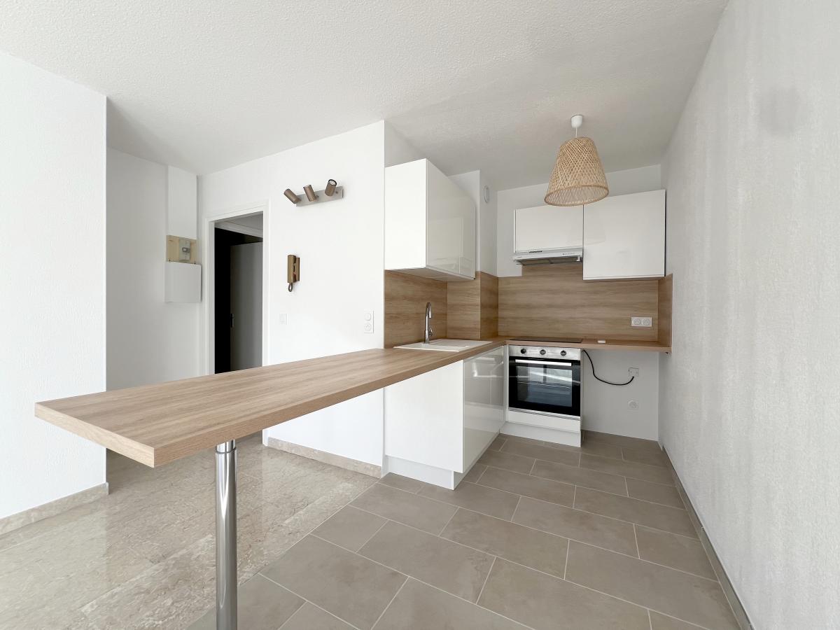 Il dispose d'une séjour avec cuisine ouverte et bar pour se restaurer, d'une chambre avec placard (7,45m²) d’une salle de douche et d’un toilette indépendant.