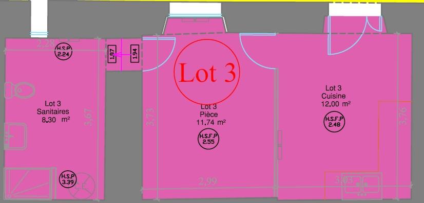 Un appartement comprenant : une cuisine, un chambre, une salle d'eau avec wc.