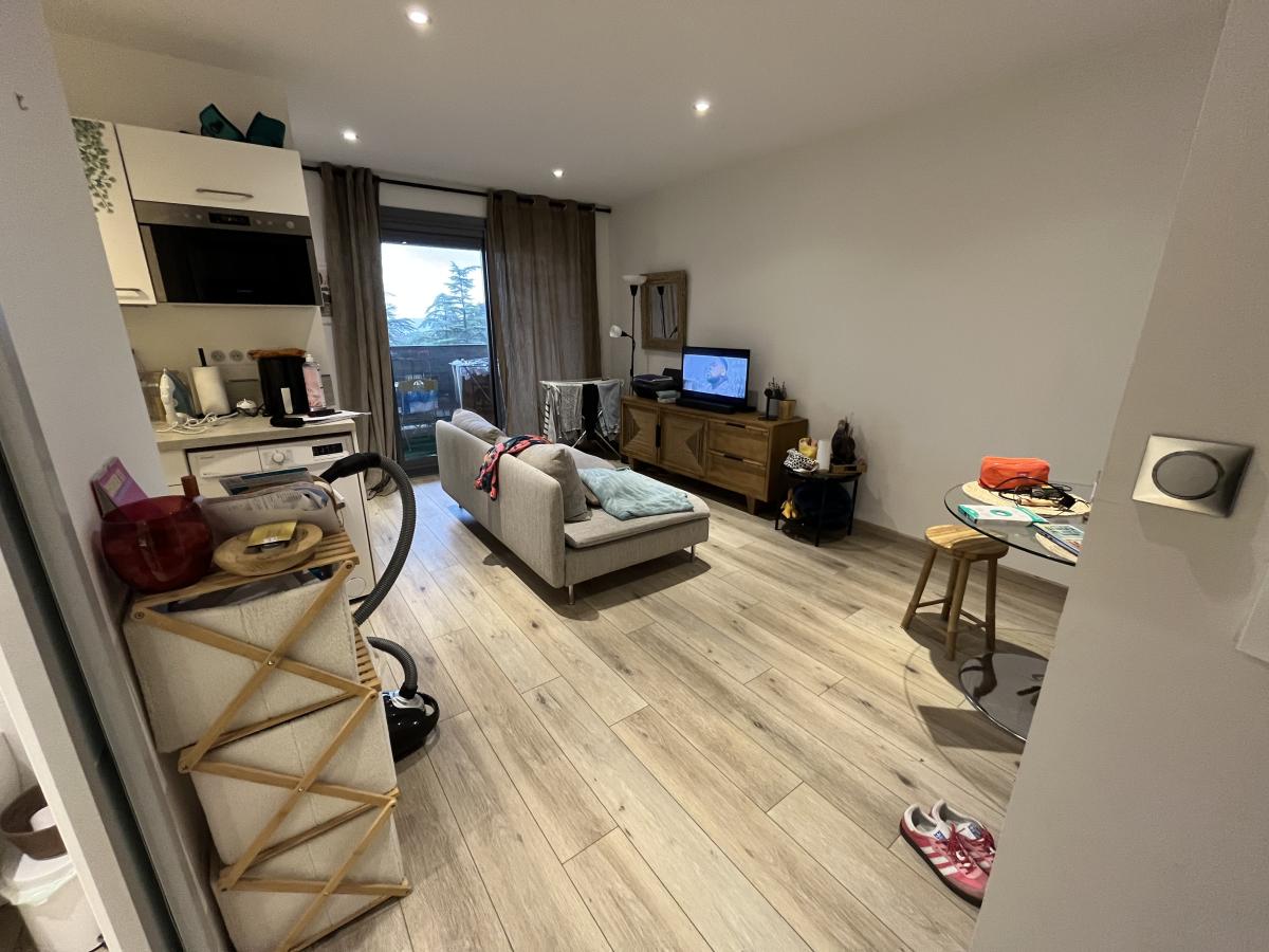 Idéalement situé, cet appartement Type 2 vous séduira par son agencement fonctionnel et ses prestations. Dès l’entrée, vous serez conquis par son séjour lumineux, ouvert sur un coin cuisine aménagé et équipé, parfait pour cuisiner tout en restant en contact avec vos invités.