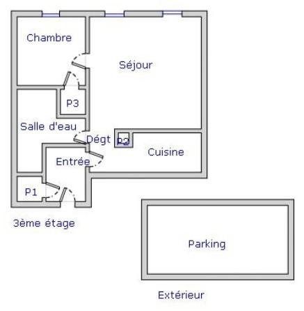 Appartement au 3ème étage avec ascenseur comprenant: entrée avec placard, cuisine aménagée et équipée (éléments hauts et bas, évier 1 bac, plaque électrique 4 feux, four), séjour, pièce à usage de chambre, salle d'eau (douche, meuble vasque, wc). Place de stationnement.