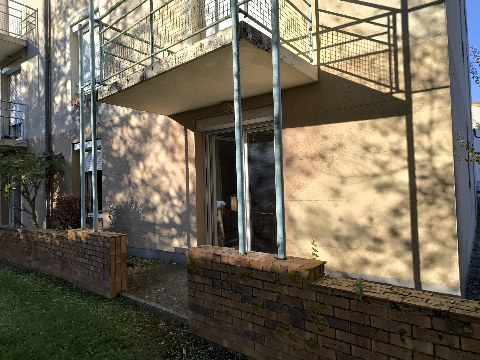 POUR INVESTISSEUR : exposé sud, appartement de 39m² situé au rez-de-chaussée de résidences de trois étages comprenant : une entrée avec placards, un séjour lumineux avec baie vitrée, une kitchenette, une chambre avec placards, une salle de bains avec wc. Petite terrasse avec vue sur la verdure.