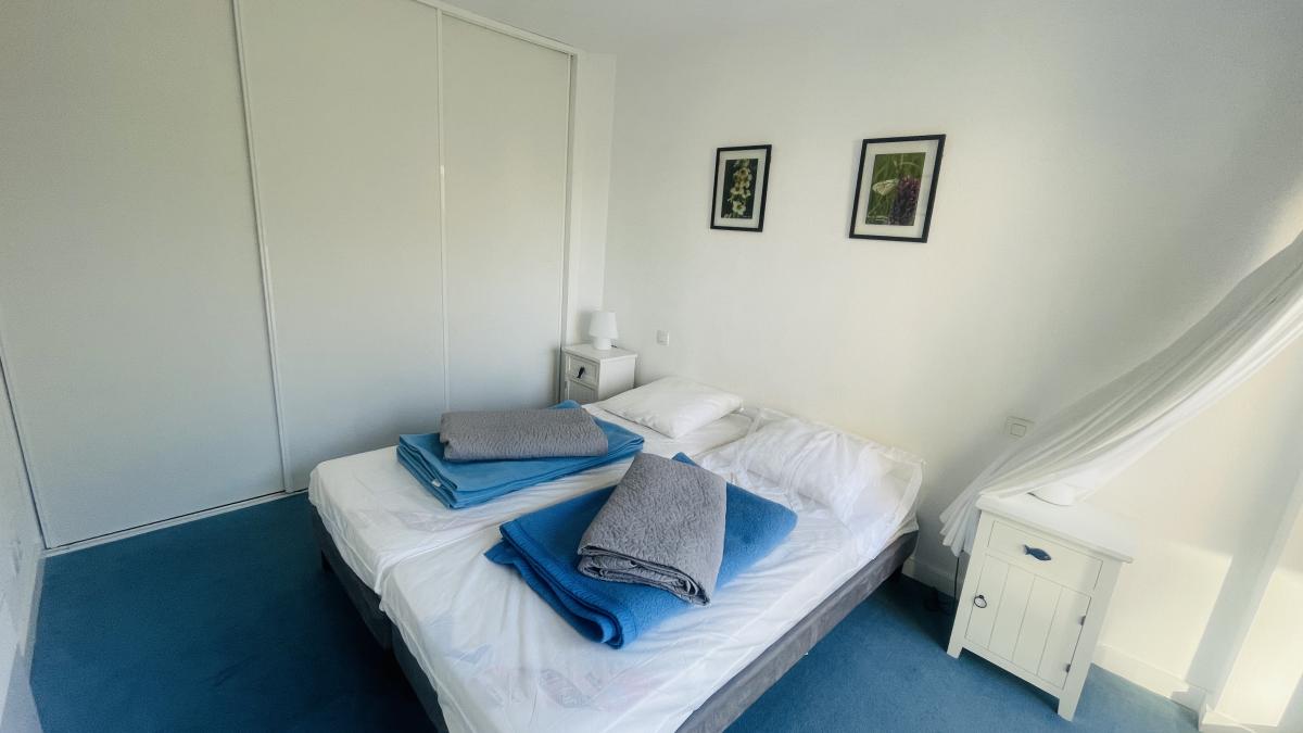 Il se compose d'une entrée, une belle pièce de vie avec accès à la terrasse, une cuisine équipée, une grande chambre avec placard donnant également sur la terrasse, une salle d'eau et des WC séparés.