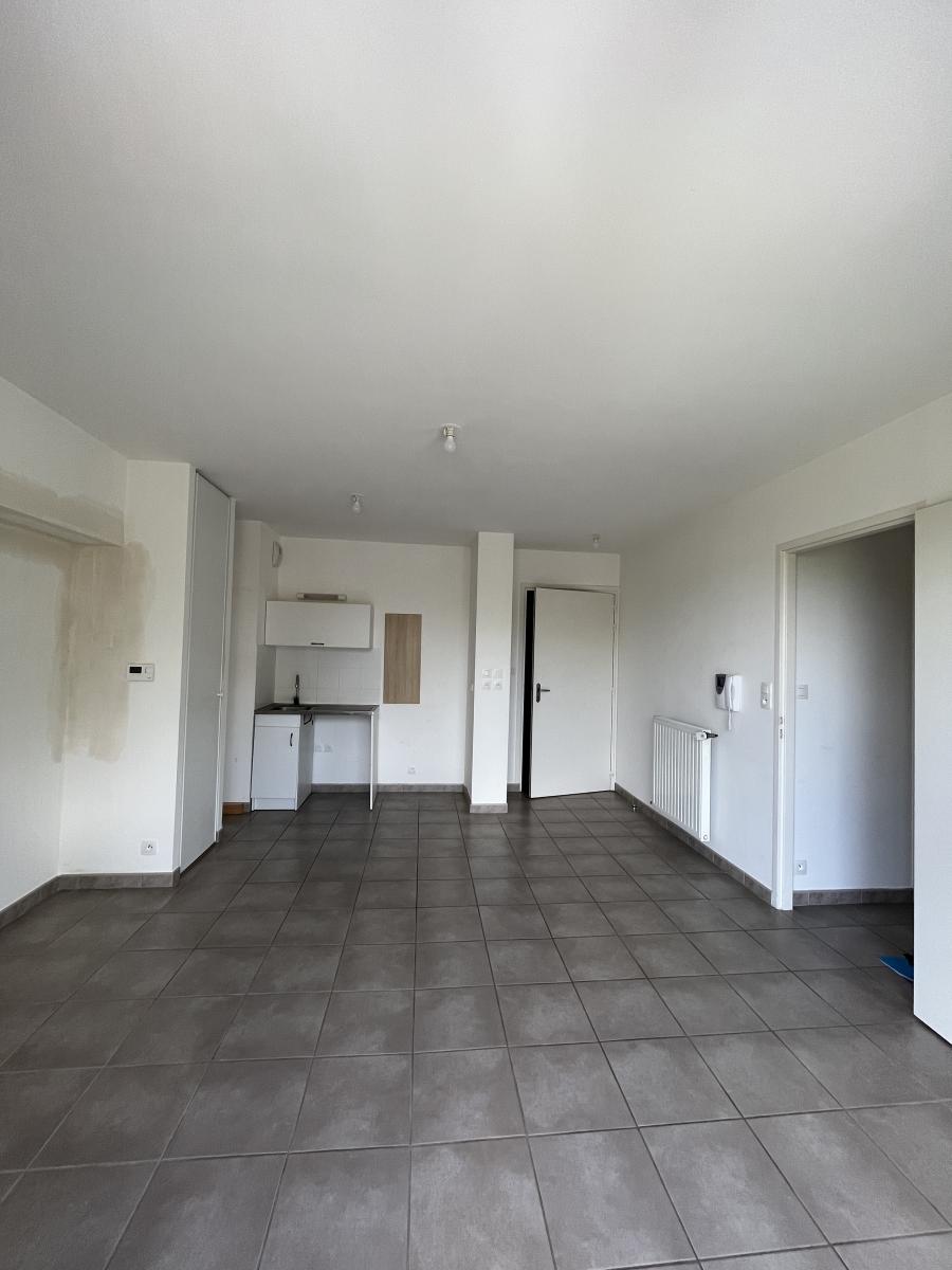 . Séjour/salon/coin cuisine donnant sur un balcon, chambre, salle d'eau, wc.