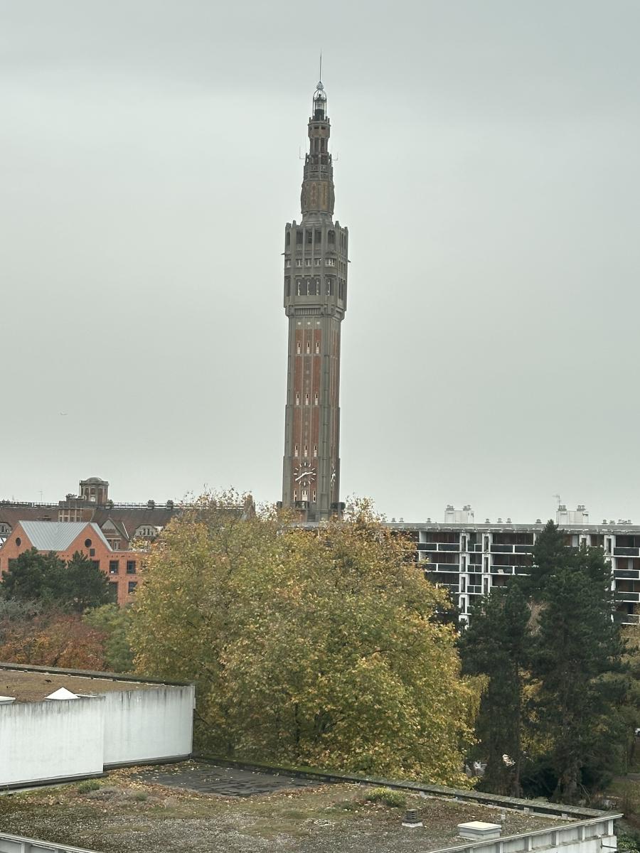 LILLE CENTRE. Au pied du métro "Mairie de Lille". Dans une copropriété 1969, au 6ème et dernier étage avec ascenseur, beau T2 rénové d'environ 42 m² offrant une pièce de vie lumineuse de 18 m² orientée plein sud et sans vis à vis (belle vue sur le beffroi de Lille), un espace cuisine aménagé, une chambre avec placards, une salle de bains (baignoire + vasque + WC) et un cellier. 2 caves + parking en sous-sol. Double vitrage + persiennes électriques. Charges de copropriété : 190€/mois (eau froide, eau chaude, chauffage, ascenseur).