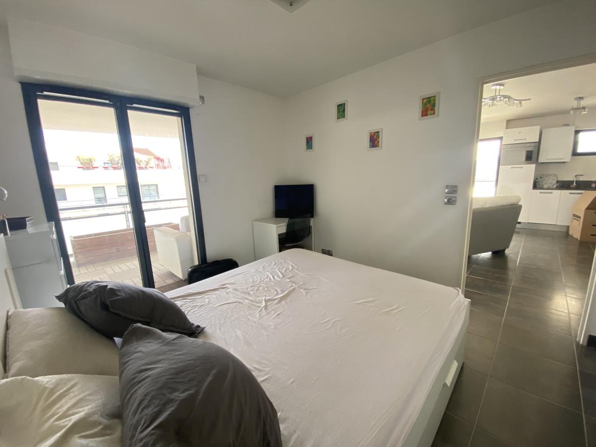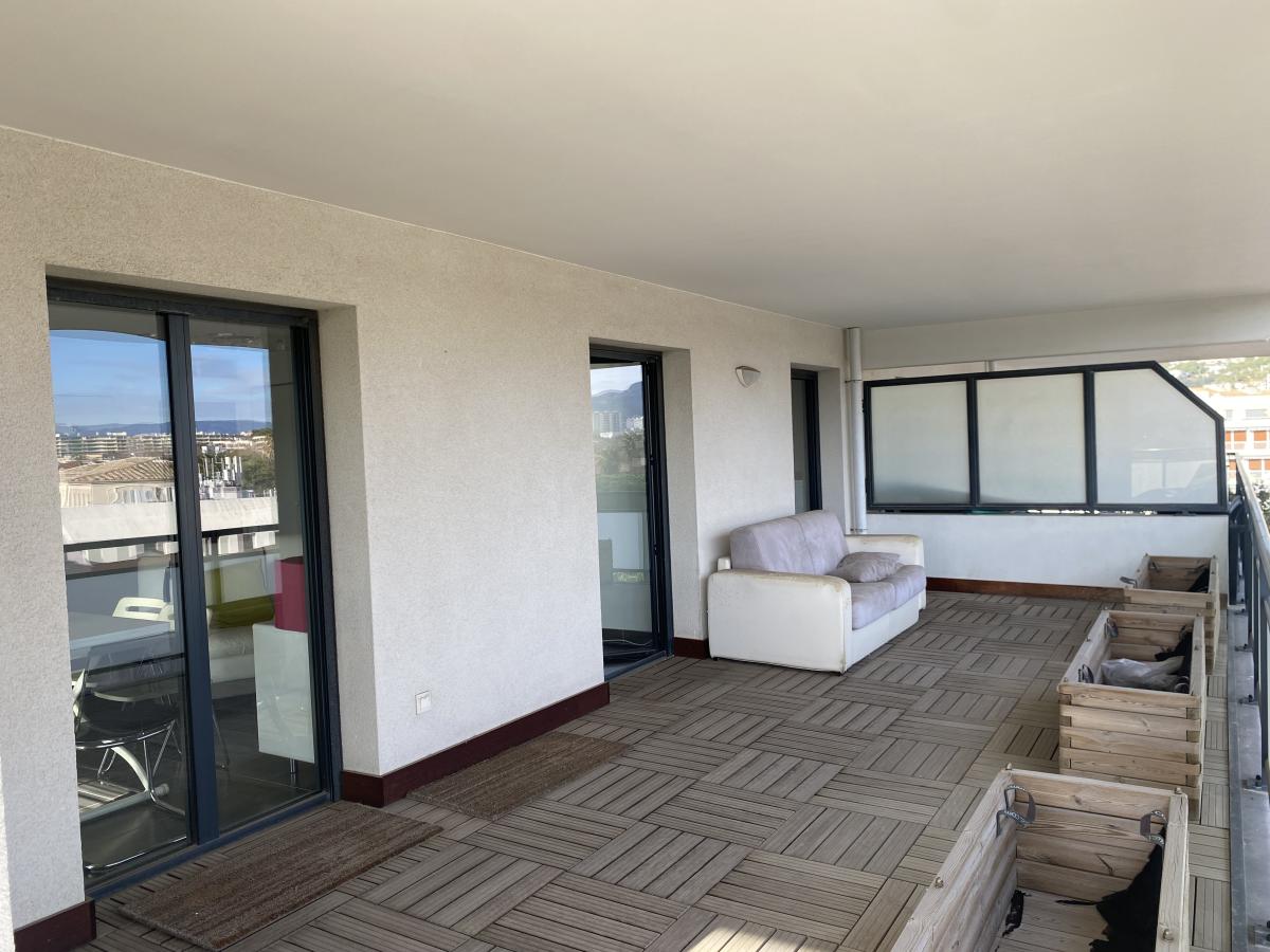 599, avenue du Prado 13008 Marseille - Appartement T2, 43 m², composé d'une entrée sur séjour avec cuisine américaine ouvrant sur grande terrasse (60 m²), double exposition, une chambre avec rangements intégrés et accès terrasse, salle d'eau avec toilettes. vendu avec box fermé (voiture + 2 roues). Au 3ème étage avec ascenseur, cet appartement étonne avec cette immense terrasse, véritable espace de vie. En très bon état, climatisé, dans une copropriété de standing parfaitement tenue et sécurisée. Quopte-part charges de copropriété : 748 € / trimestre, eau, chauffage et climatisation inclus.