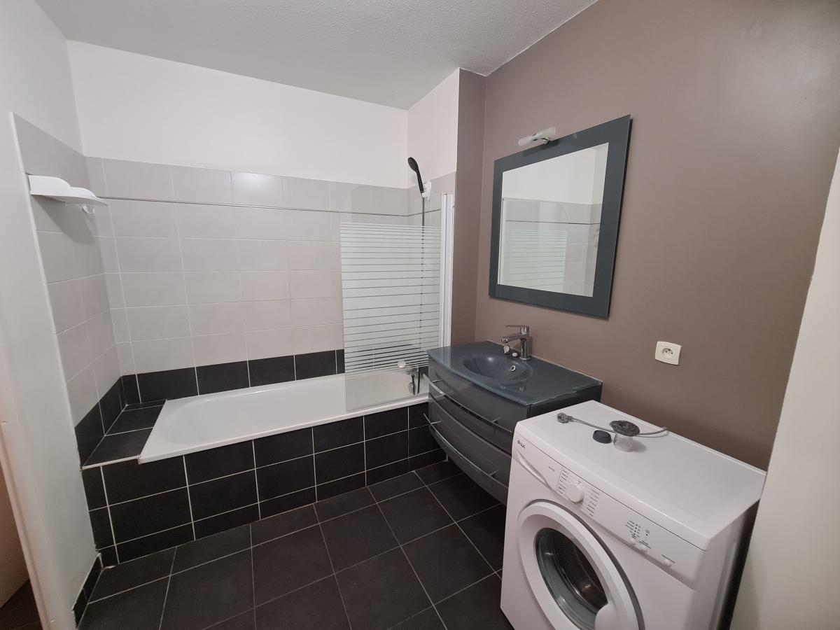 1 chambre avec placard et donnant accès également au balcon, SDB et wc et machine à laver.