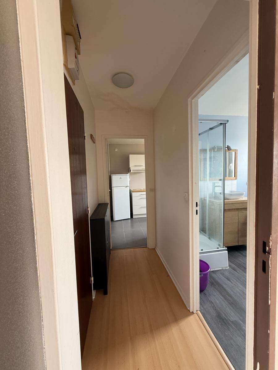 - Entrée, dégagement, salle de douches avec WC, cuisine équipée, séjour, chambre.