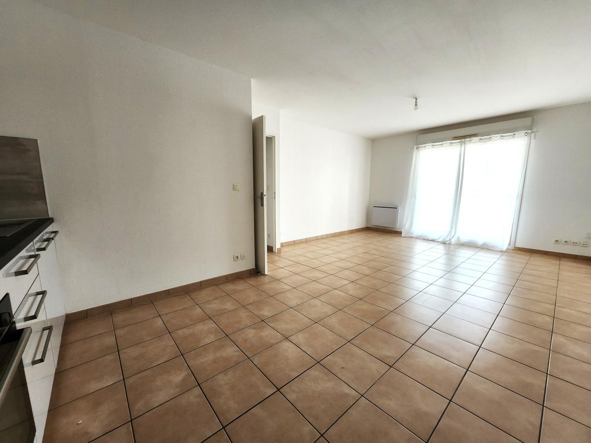 Une entrée avec placard, une pièce de vie donnant sur une large terrasse exposée sud et avec cuisine ouverte aménagée et équipée, une chambre avec placard, une salle d'eau, et WC séparés.