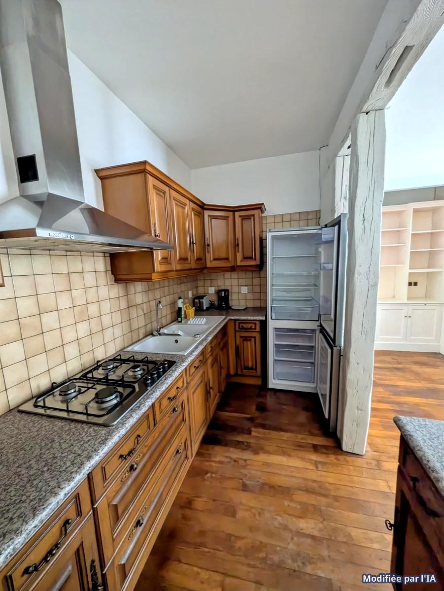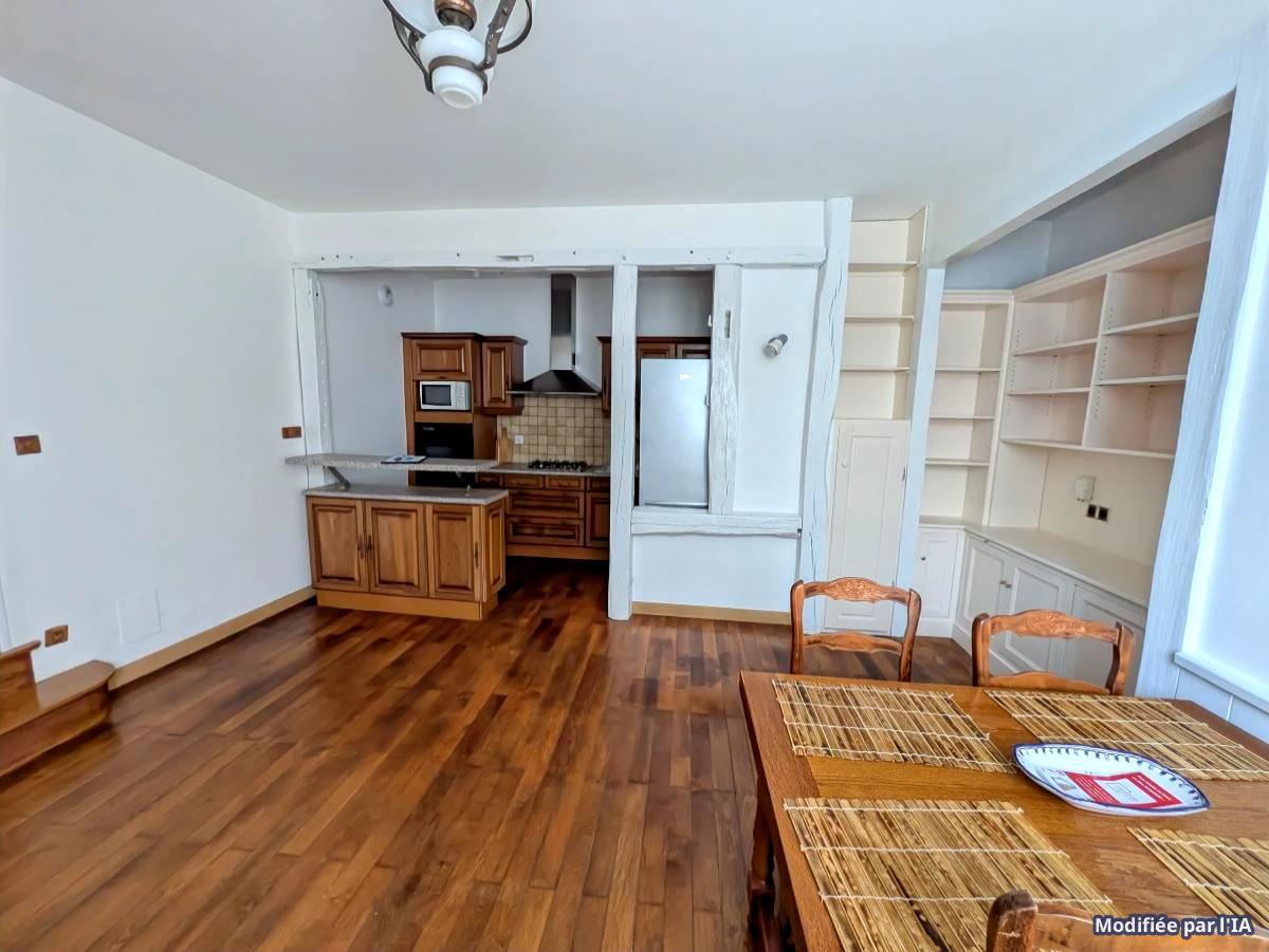 Appartement traversant sur 2 demi-niveaux: d'abord le coin nuit puis le coin jour en contre bas, avec un grand séjour ouvert sur la cuisine entièrement équipée.