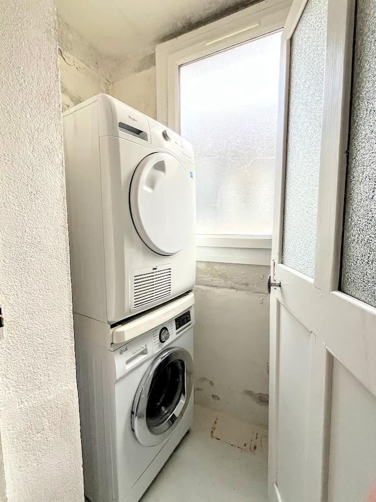 Les parties communes comprennent un bel escalier en bois, ainsi qu’un local buanderie privatif situé sur le demi-palier, idéal pour machine à laver et sèche-linge. Une cour intérieure permet le stockage des vélos.
