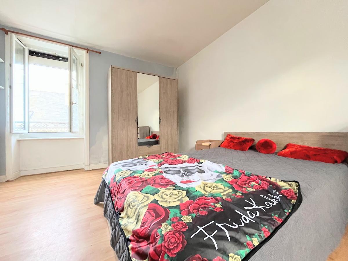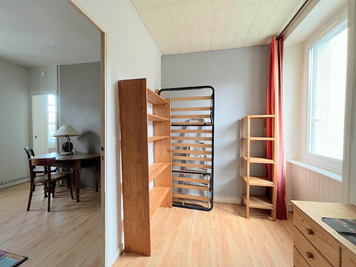 La chambre principale, spacieuse, est traversante et dispose de sa salle d’eau attenante, à rafraichir.