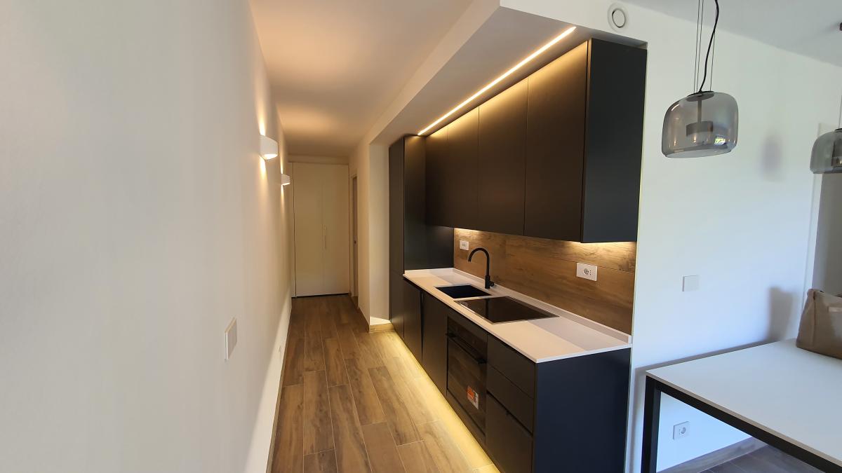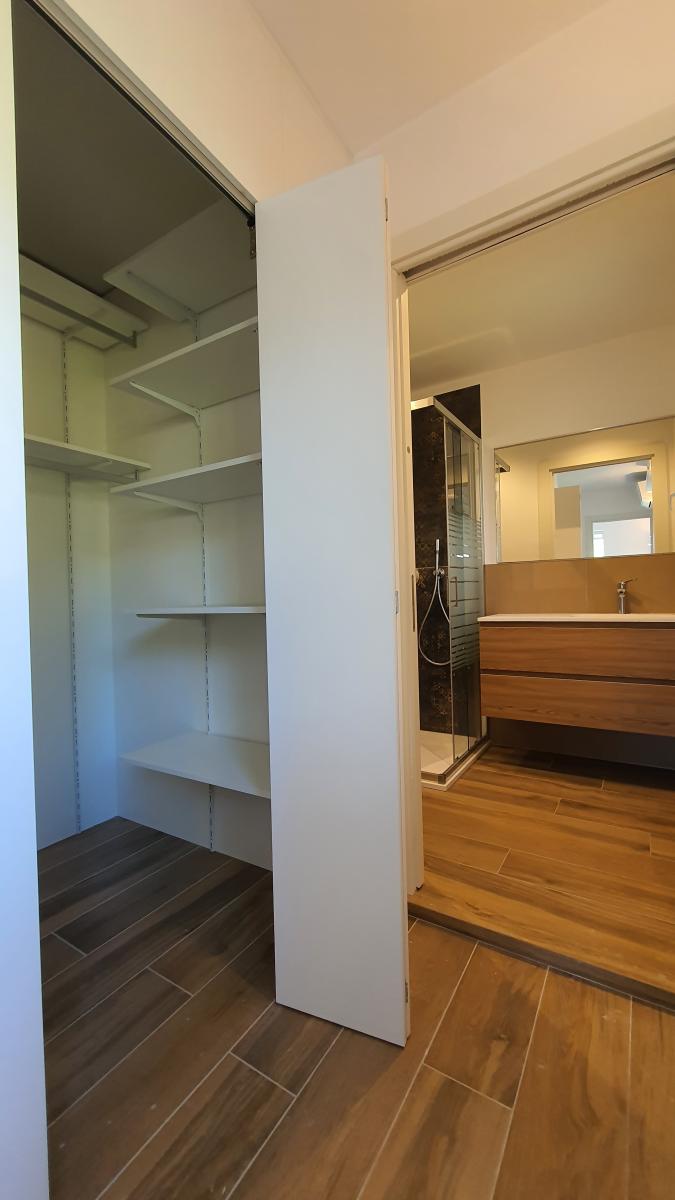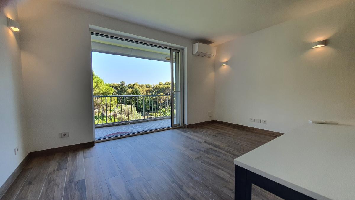 SUR LE PLATEAU DU CAP, dans une résidence de standing, coquet deux pièces élégamment rénové + terrasse composé d'une entrée avec placards, salle d'eau avec WC, cuisine entièrement équipée et chambre avec seconde salle d'eau/WC.