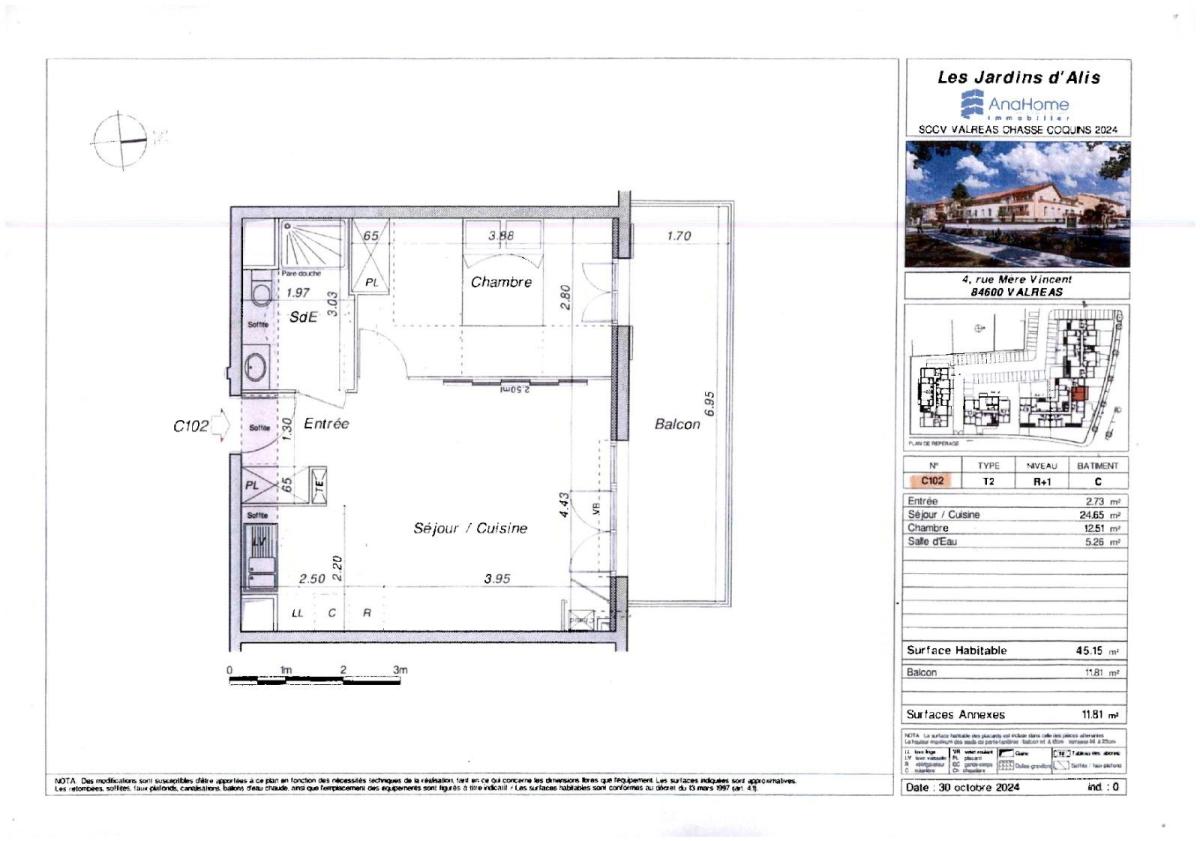 Appartement T2 de 45m²  dans résidence  situé en centre ville de VALREAS, à deux pas des commerces  est composé d'une entrée, un séjour cuisine ouverte sur un balcon de 11m² , une chambre avec placard, une salle de douche avec wc.Volets roulants manuels, porte d'entrée serrure 3 points, sèche- serviettes dans la salle de bain.RE 2020 Portail motorisé à l'entrée de la résidence, badges fournis pour la porte d'entrée au bâtiment. PRIX: 131.039,07 € TTC Sous réserve d'éligibilité au taux réduit de TVA 5,5% Coordonnées négociateur : Isabelle CALVET, Mobile : 06 75 21 22 17, Email : negociation.84064@notaires.fr; référence : 84064-1074170; surface habitable (m²) : 45.15;