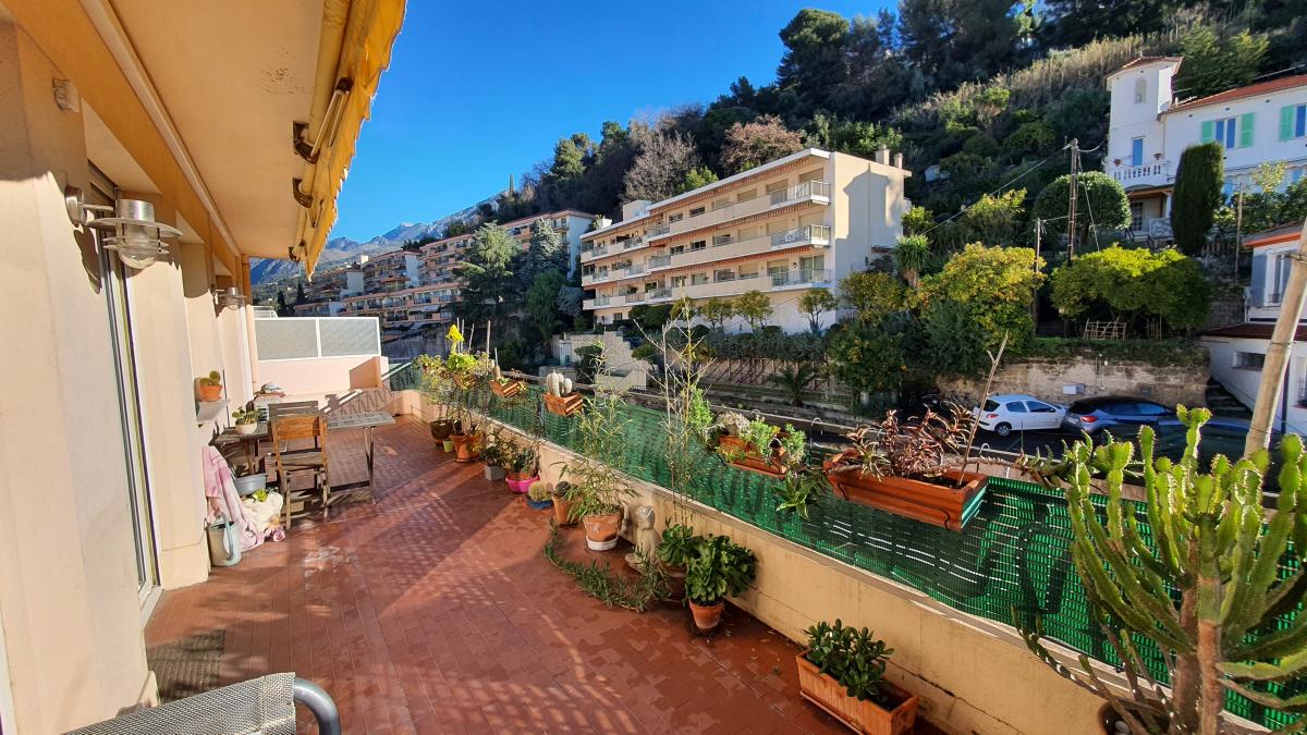Agréable terrasse sur tout l'appartement avec vue dégagée et vue montagne