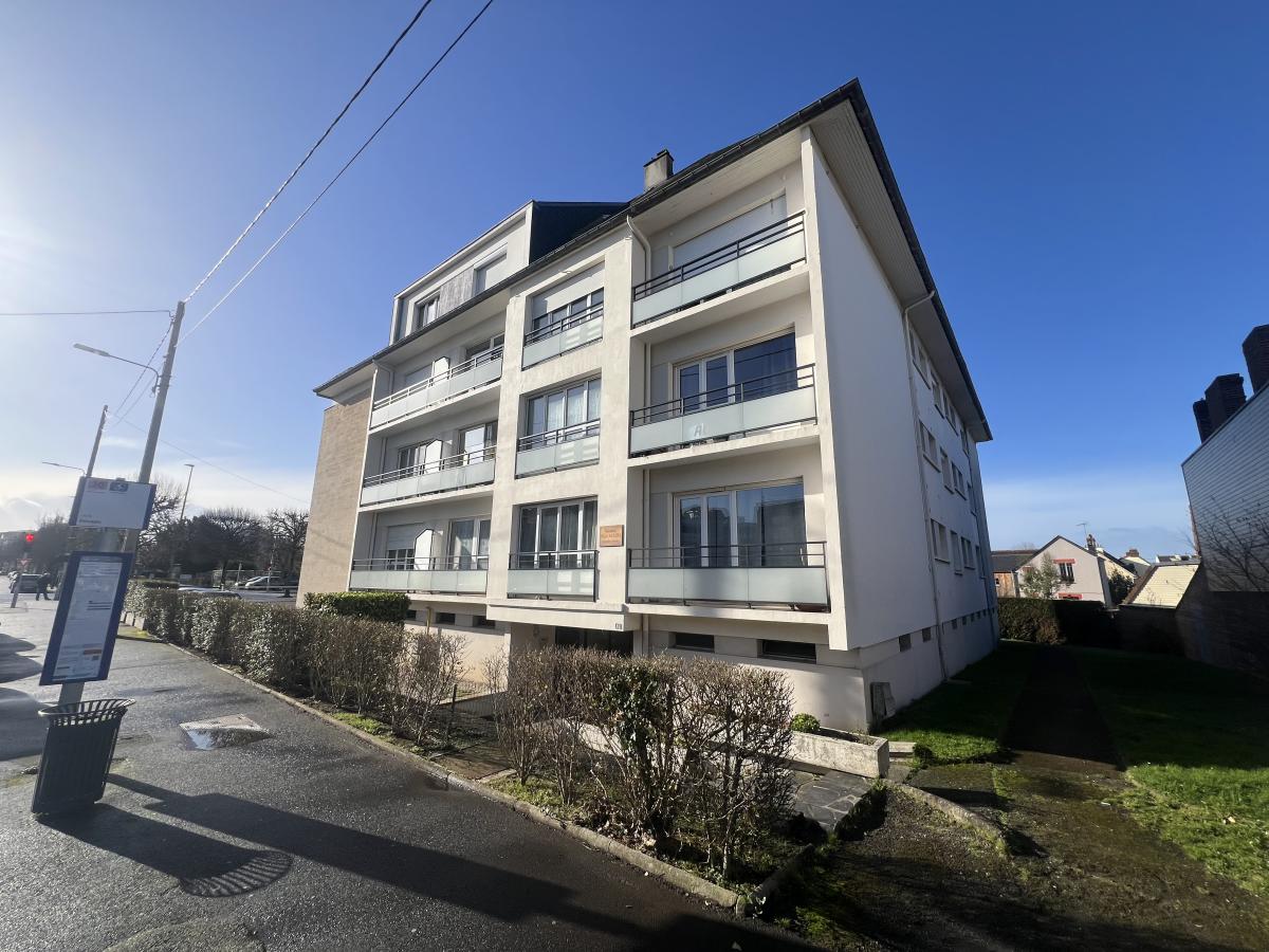 CAEN Rive droite proche clinique du Parc - T2 de 47 m2 VENDU LOUE comprenant entrée avec placards, séjour avec balcon, cuisine, chambre, salle de bains avec wc. Cave et Jouissance de stationnement sécurisé dans la cour de la résidence. Loué 500 € net mensuel. Locataire en place de depuis 30 ans. Bon état général. DPE : E