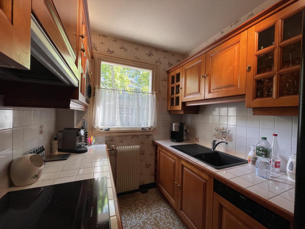 Chauffage collectif. Immeuble avec gardien, jardin extérieur.