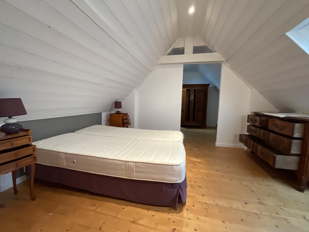 Elle offre de plain pieds, une cuisine équipée, salle d'eau/wc, et mezzanine/chambre à l'étage avec cabinet de toilette.
