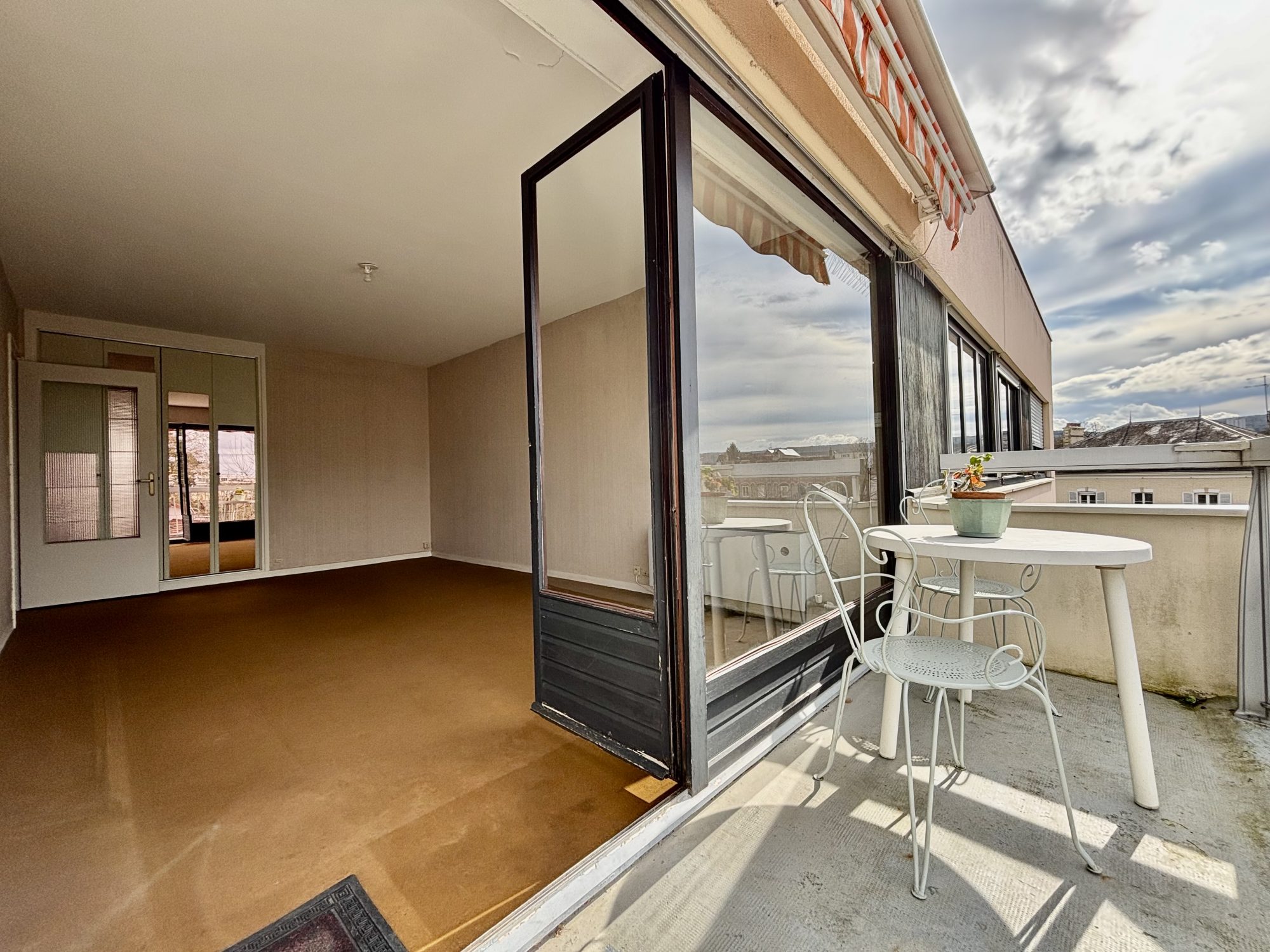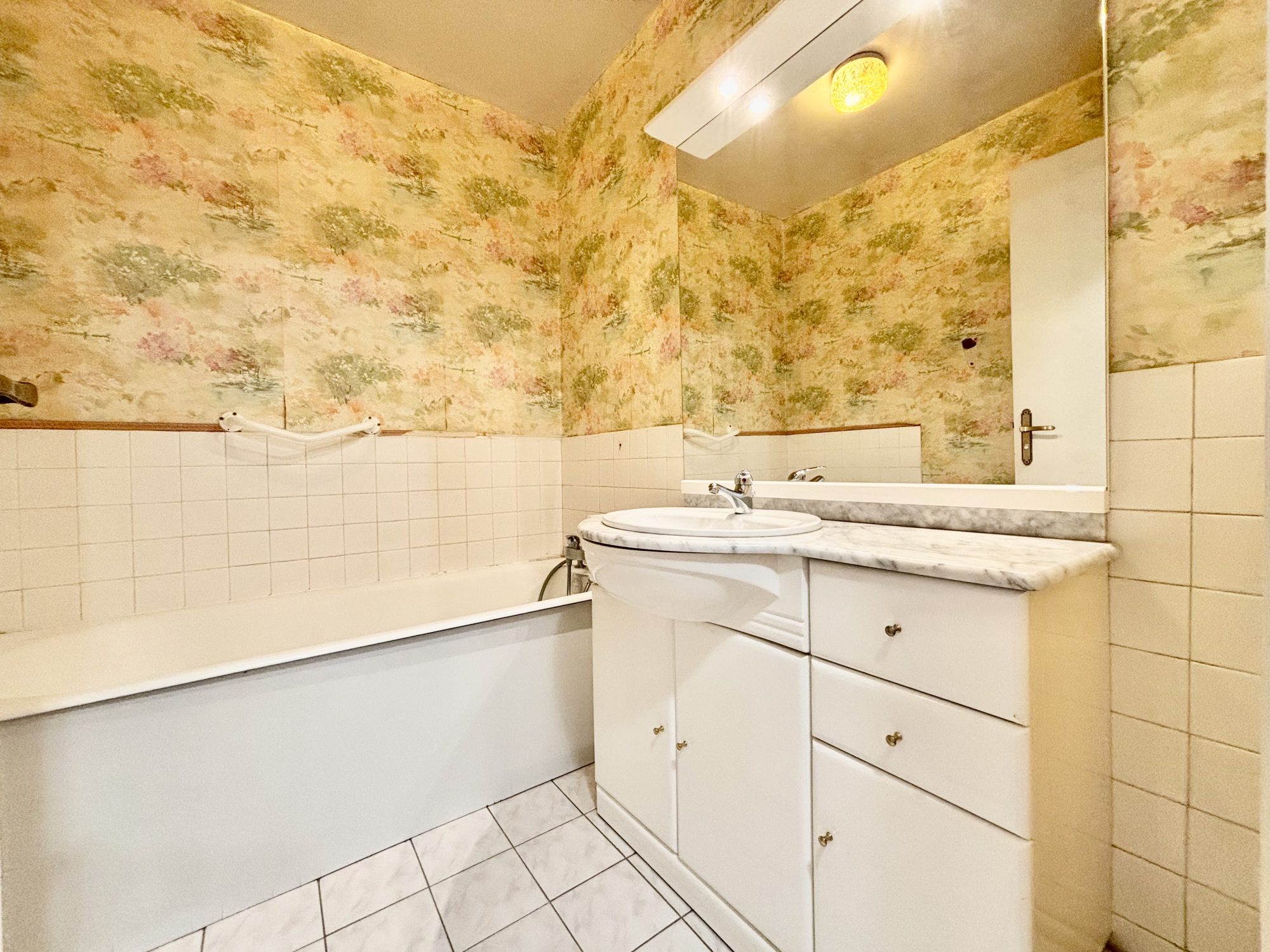 L'appartement comprend : une entrée avec placard desservant, une salle de bains, un wc indépendant, un séjour lumineux avec rangement et accès au balcon, une cuisine et une chambre.