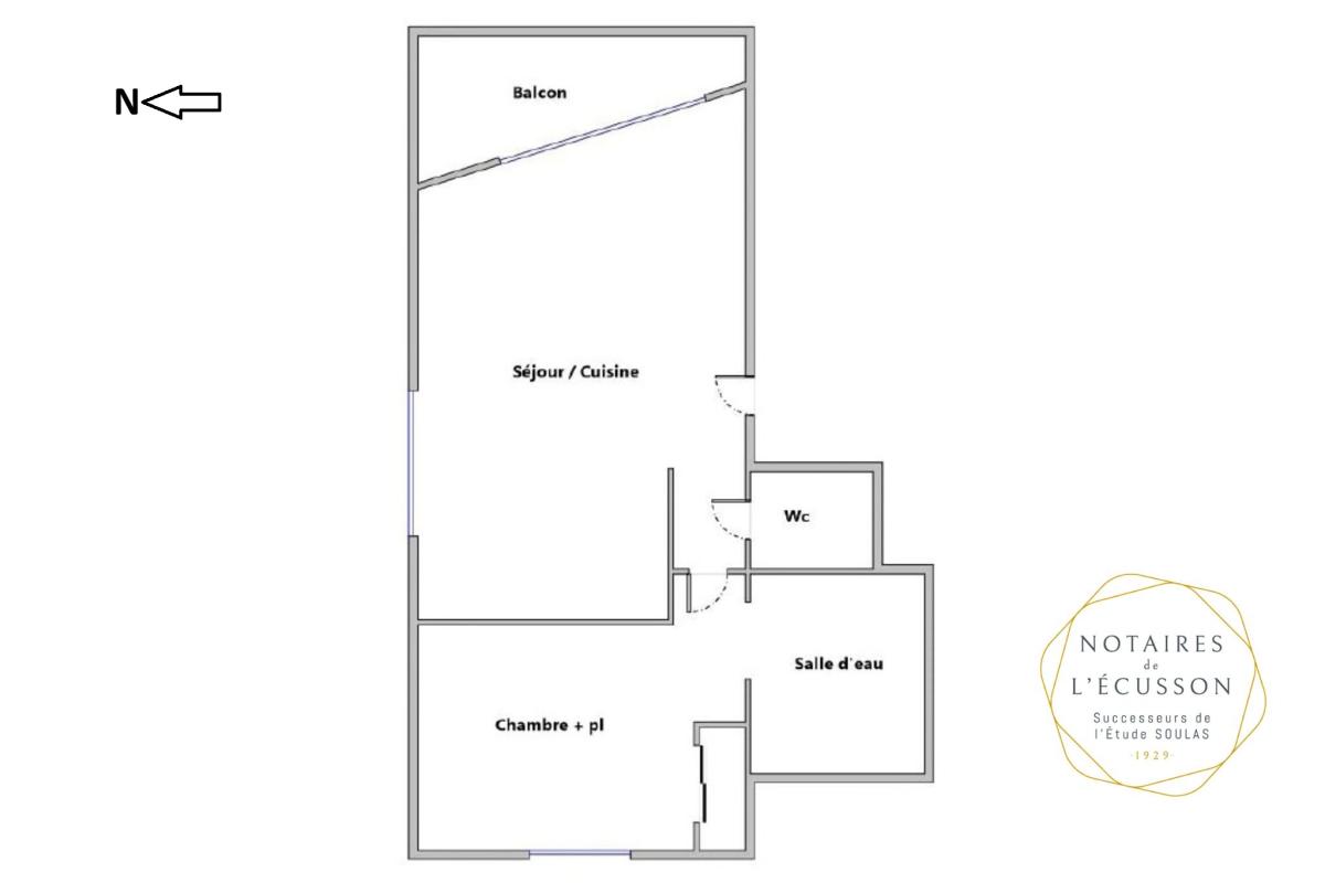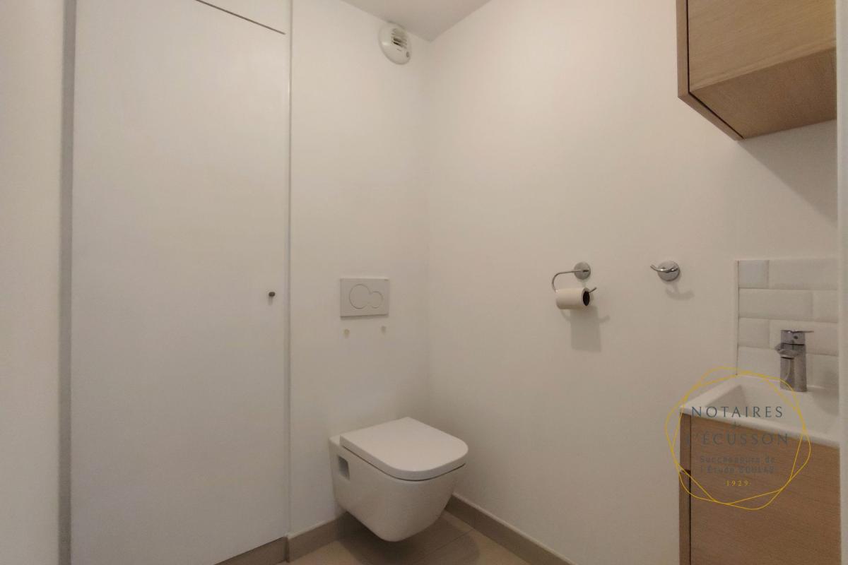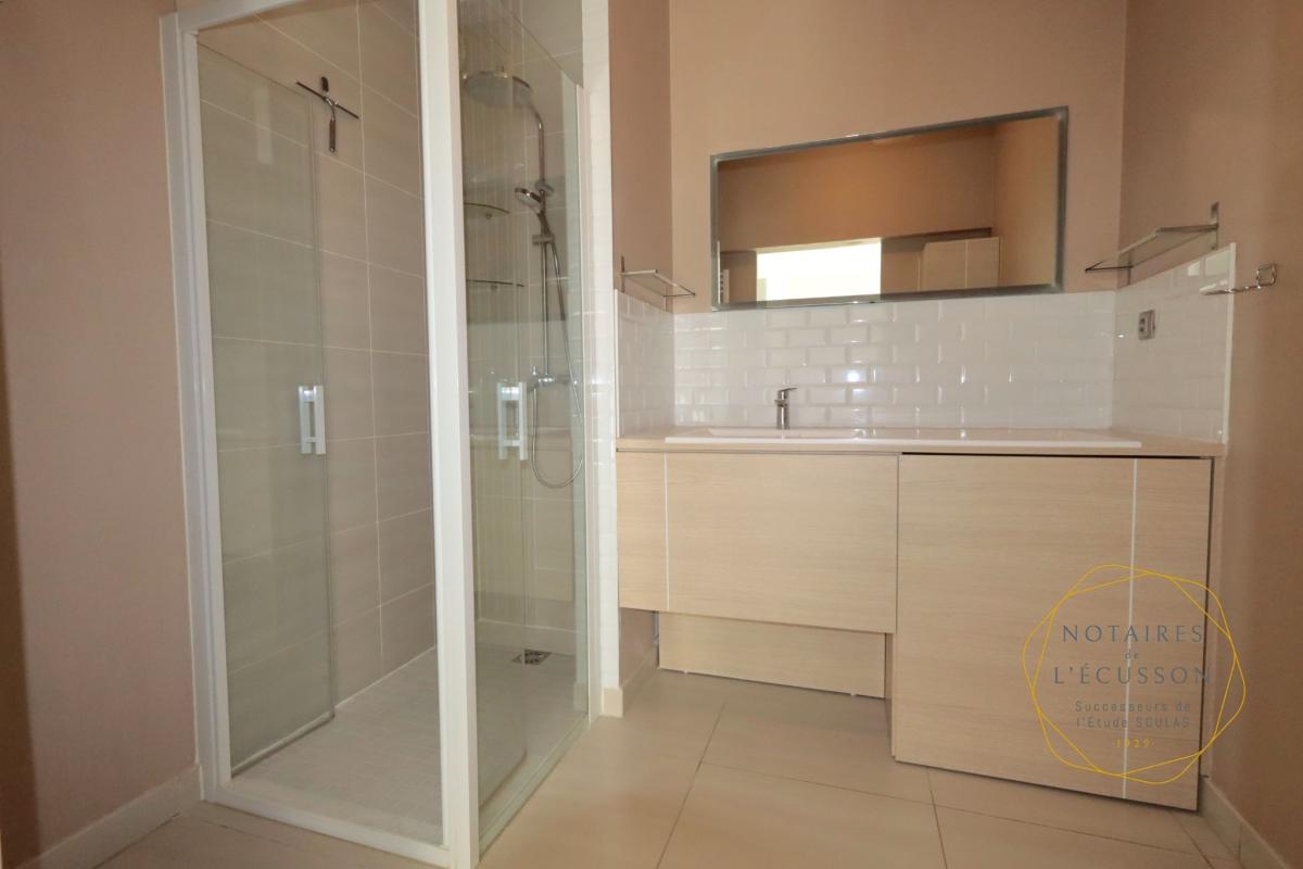L'appartement climatisé est composé d'un séjour avec une cuisine toute équipée, une terrasse, un dégagement avec rangements, wc séparés avec lave-mains, salle d'eau et chambre avec placard.