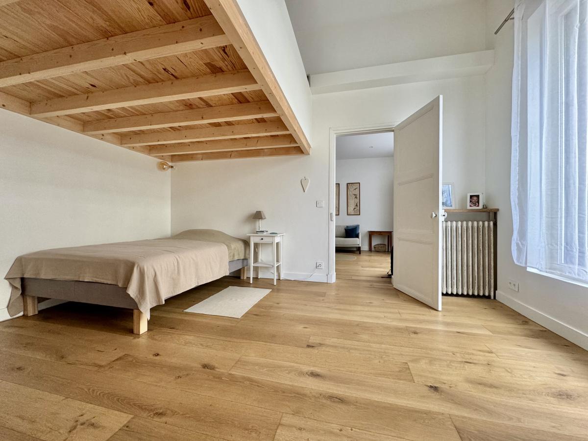 - Chambre spacieuse : 17,22 m² avec mezzanine de 7,50 m² (idéale pour un espace bureau ou couchage d’appoint)