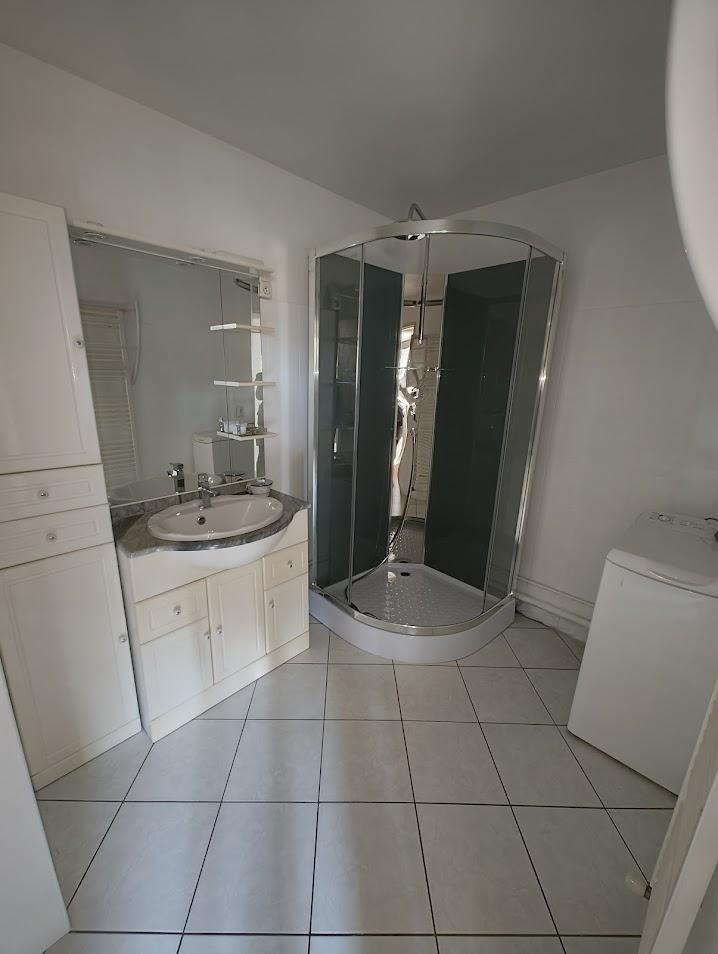 Entrée, wc et point d'eau, grand salon séjour avec cuisine ouverte, une chambre avec placards, grande salle de bains avec douche.