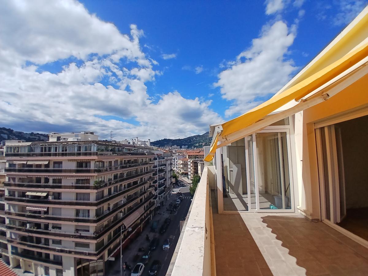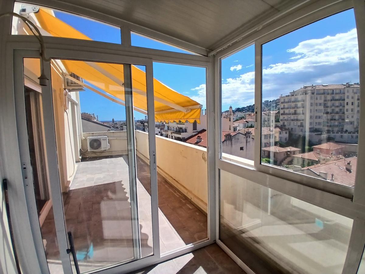 Nice Auguste Raynaud - A VENDRE en septième et dernier étage. Un appartement composé d'une entrée, une cuisine indépendante avec véranda (5.15 m²), un séjour, une chambre. Les 3 pièces principales donnant sur une terrasse de 15 m² avec vue dégagée sur les collines Ouest. une salle de douches/WC, un placard. Le tout est en bon état, lumineux, les baies vitrées sont équipées de double vitrage, volets roulants et store sur la terrasse. Une cave complète ce bien. INFORMATION IMPORTANTE : La chaudière fioul vient d'être remplacée contre une nouvelle chaudière GAZ (rien à payer) ce qui changera forcément l'état du DPE.