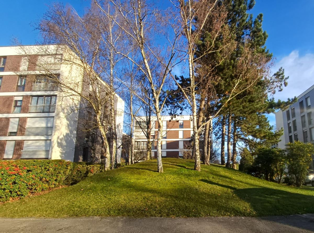 Agréable copropriété de 4 étages avec ascenseur, parking, gardien et espaces verts.